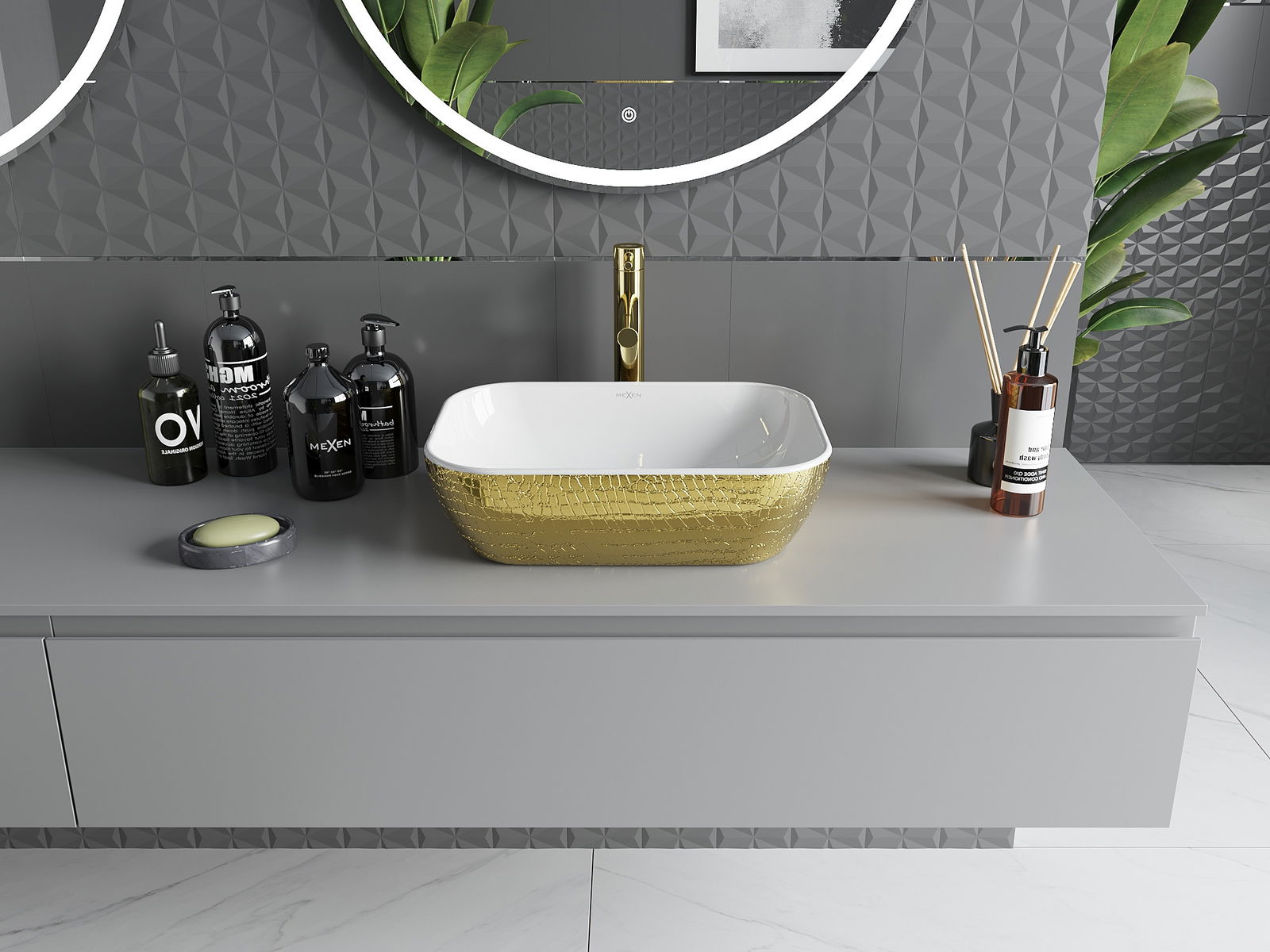 Mexen Rita lavabo à poser 45 x 32 cm, blanc/or motif écaille - 21084554