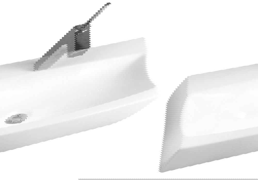 Le lavabo est doté d'un trou pour installer un robinet. Cela permet de gagner de la place dans la salle de bains et de mettre en valeur son esthétique. Cette solution facilite également la propreté des abords du lavabo.