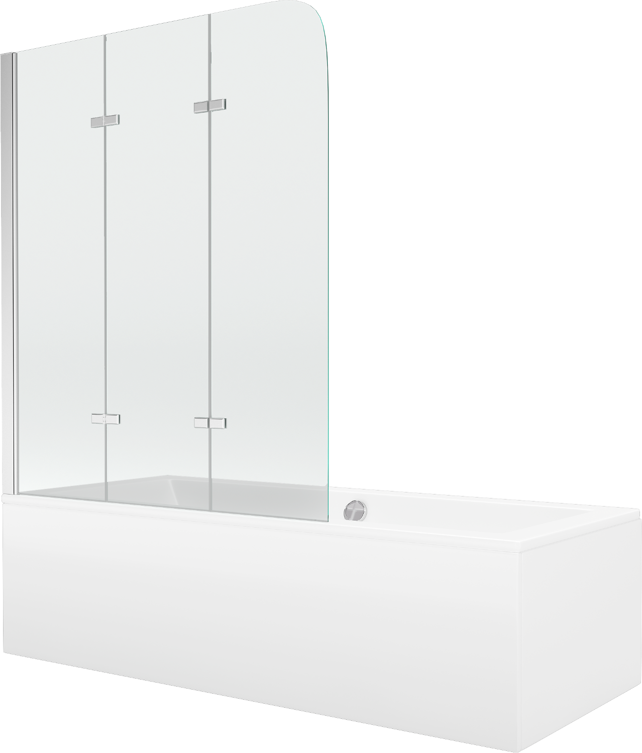 Mexen Cube baignoire rectangulaire 170 x 80 cm avec habillage et paroi 3 volets 120 cm, transparent, chrome - 550517080X9012030?
