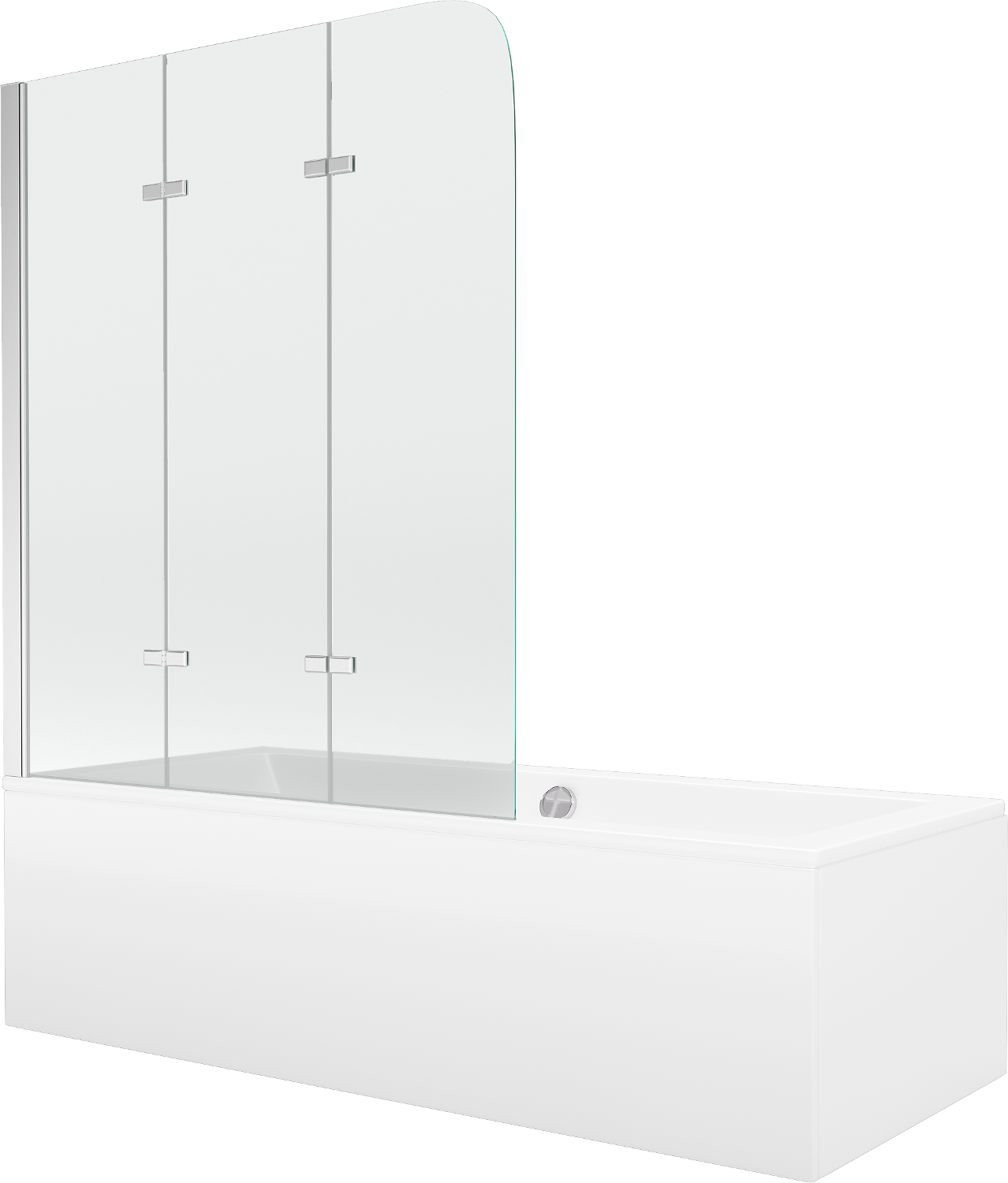 Mexen Cube baignoire rectangulaire 180 x 80 cm avec habillage et paravent 3 volets 120 cm, transparent, chrome