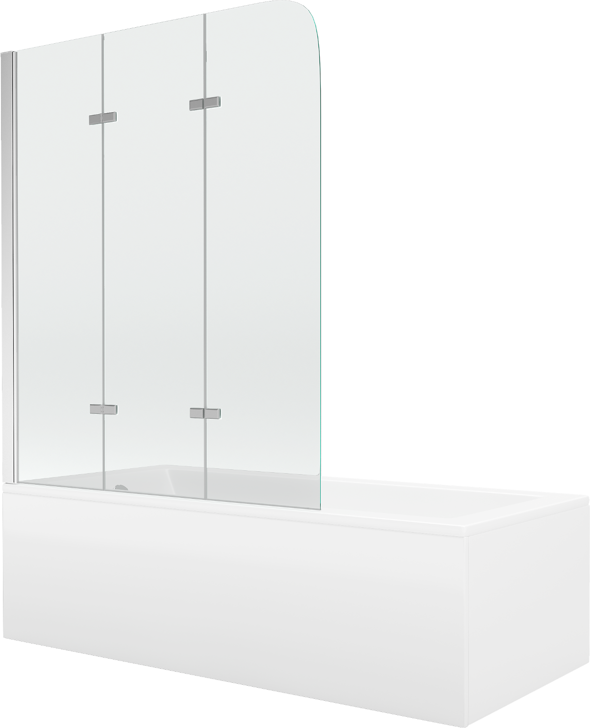 Mexen Cubik baignoire rectangulaire 150 x 70 cm avec habillage et pare-douche à 3 volets 120 cm, transparent, chrome