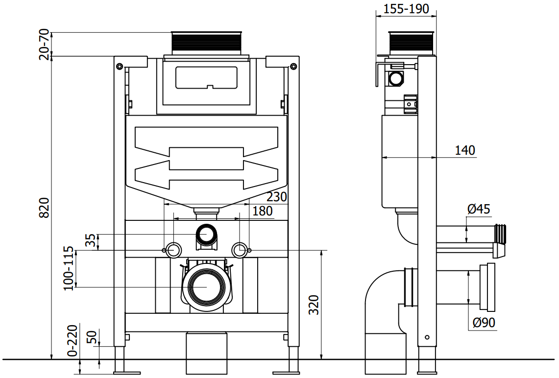 La possibilité de régler la hauteur du châssis permet un meilleur ajustement aux différentes conditions techniques dans la salle de bain. Une plage de réglage flexible assure le confort de l'installation et l'obtention de la hauteur optimale du châssis.