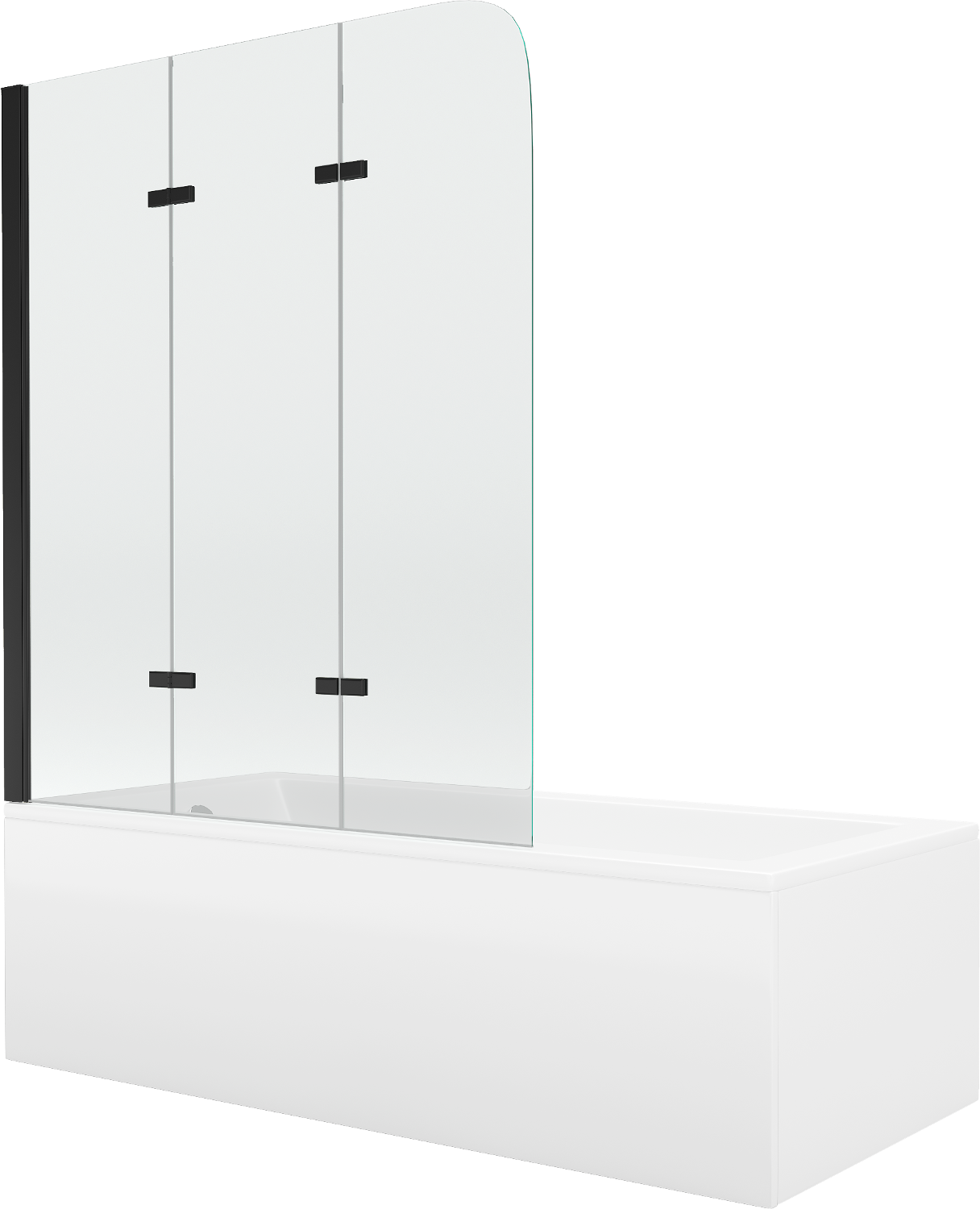 Mexen Cubik baignoire rectangulaire 160 x 70 cm avec habillage et paravent 3 volets 120 cm, transparent, noir - 550316070X90120?