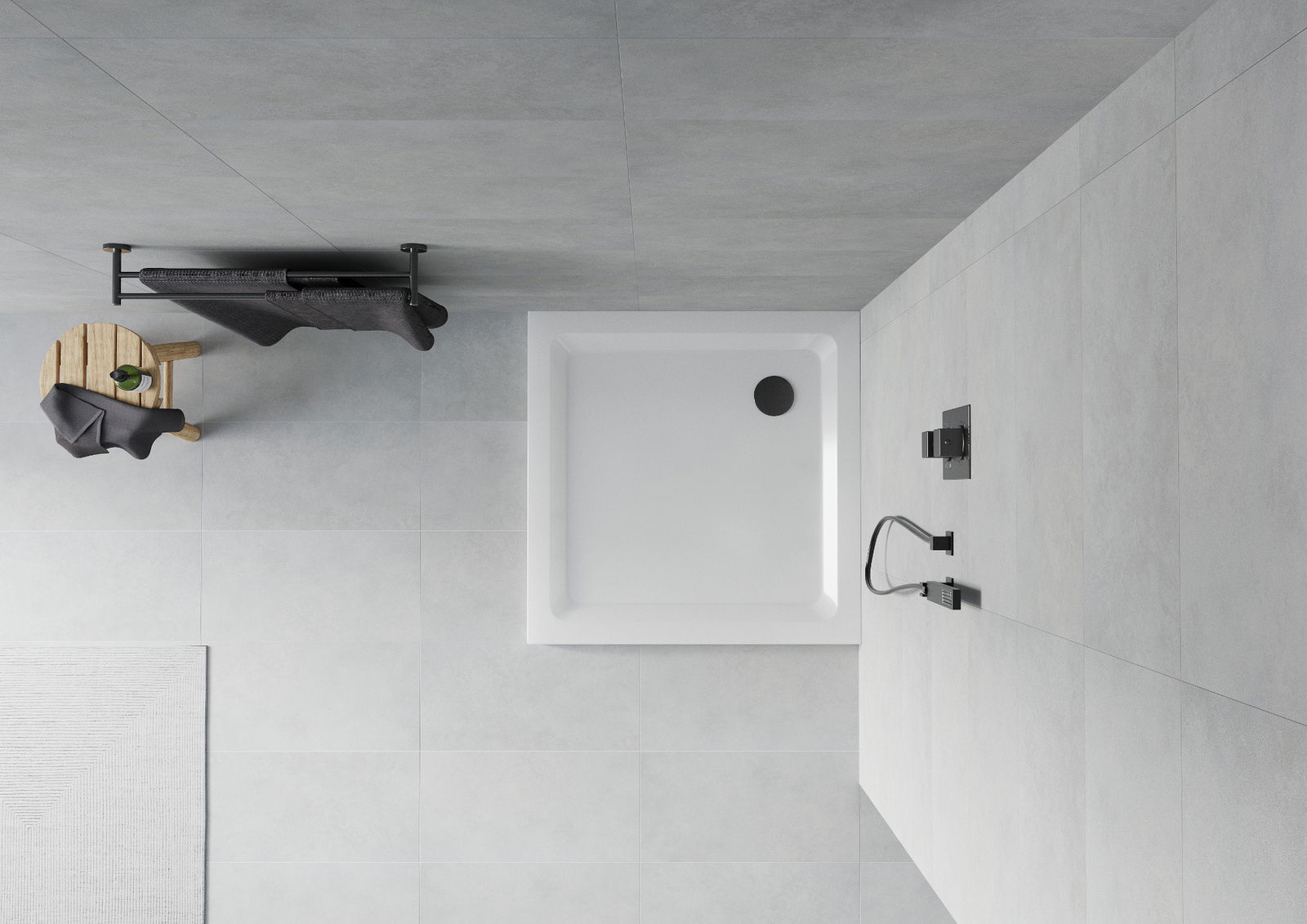 Mexen Flat bac de douche carré slim 100 x 100 cm, blanc, siphon noir - 40101010B