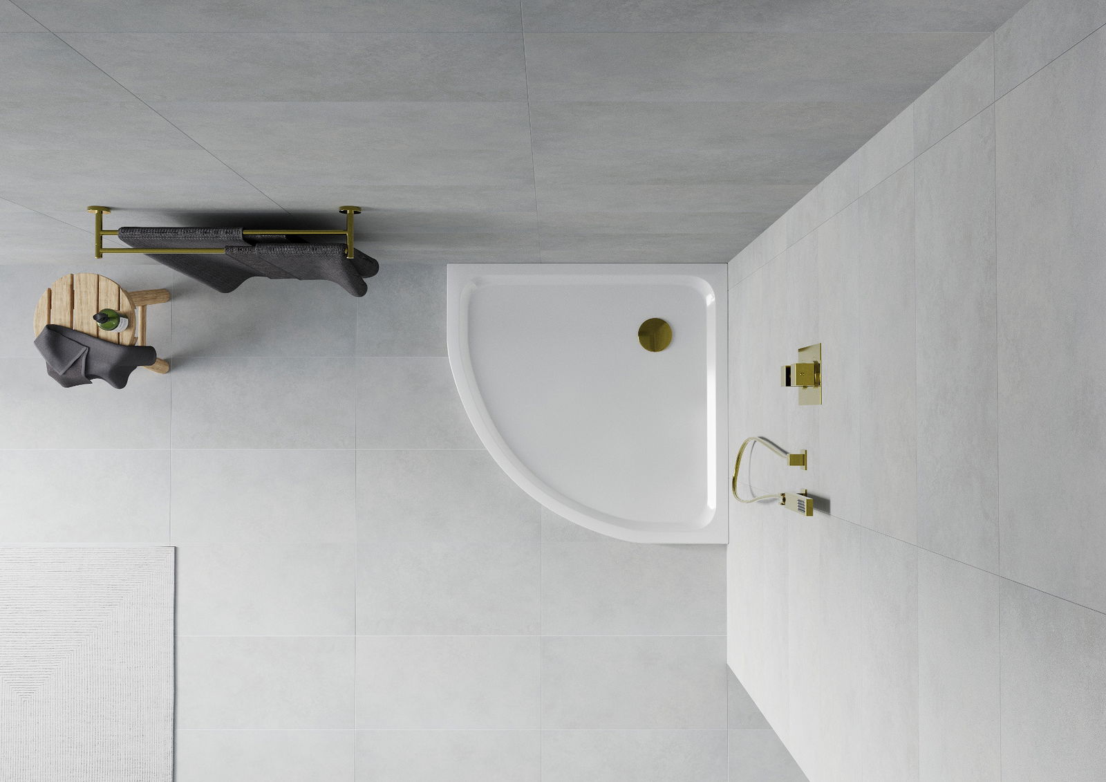 Mexen Flat receveur de douche semi-circulaire slim 80 x 80 cm, blanc, siphon doré - 41108080G