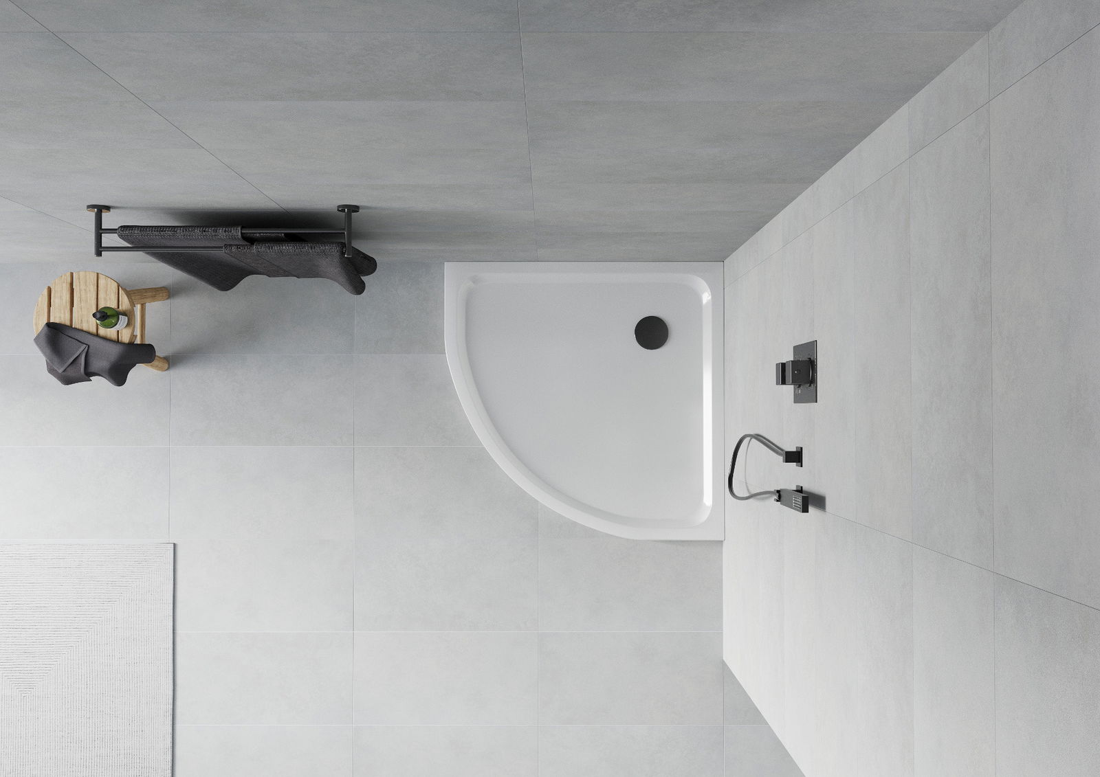 Mexen Flat receveur de douche semi-circulaire slim 90 x 90 cm, blanc, siphon noir - 41109090B