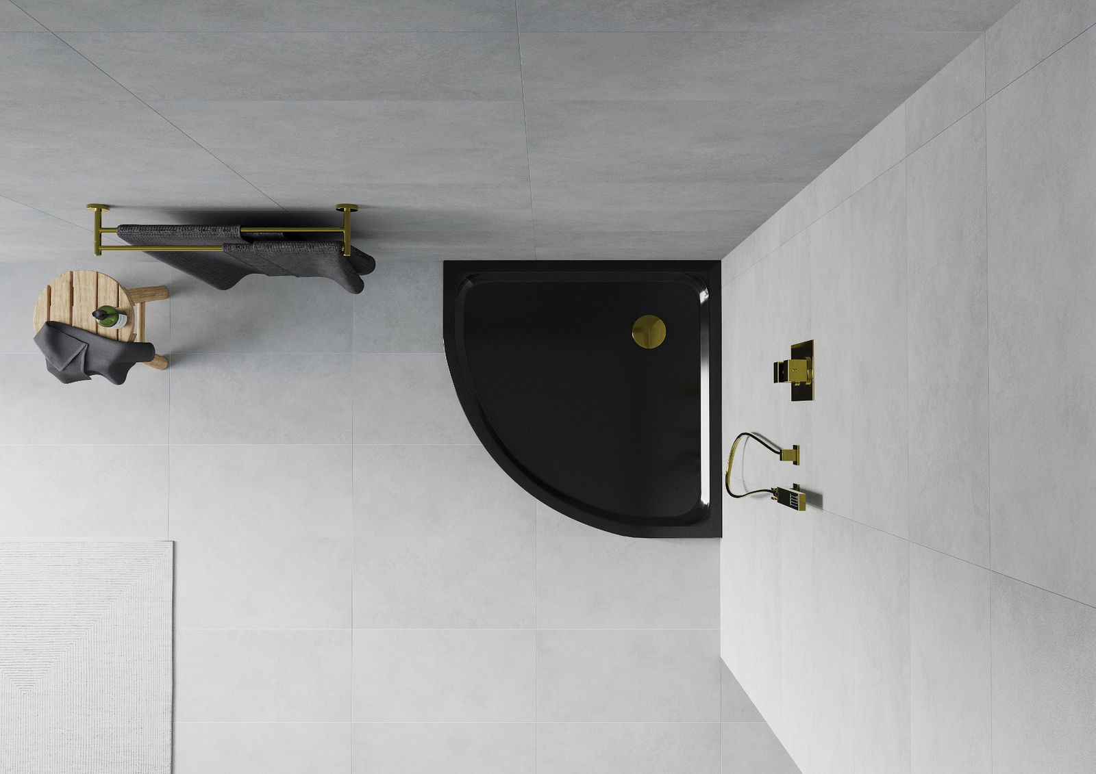 Mexen Flat receveur de douche semi-circulaire slim 80 x 80 cm, noir, siphon doré - 41708080G