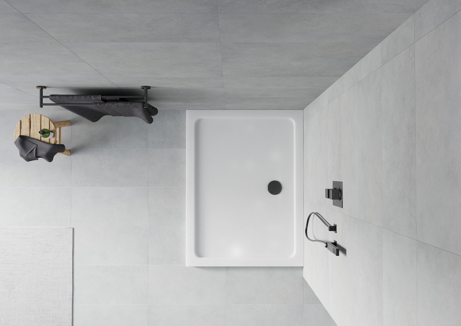Bac à douche rectangulaire Mexen Flat slim 80 x 70 cm, blanc, siphon noir - 40107080B