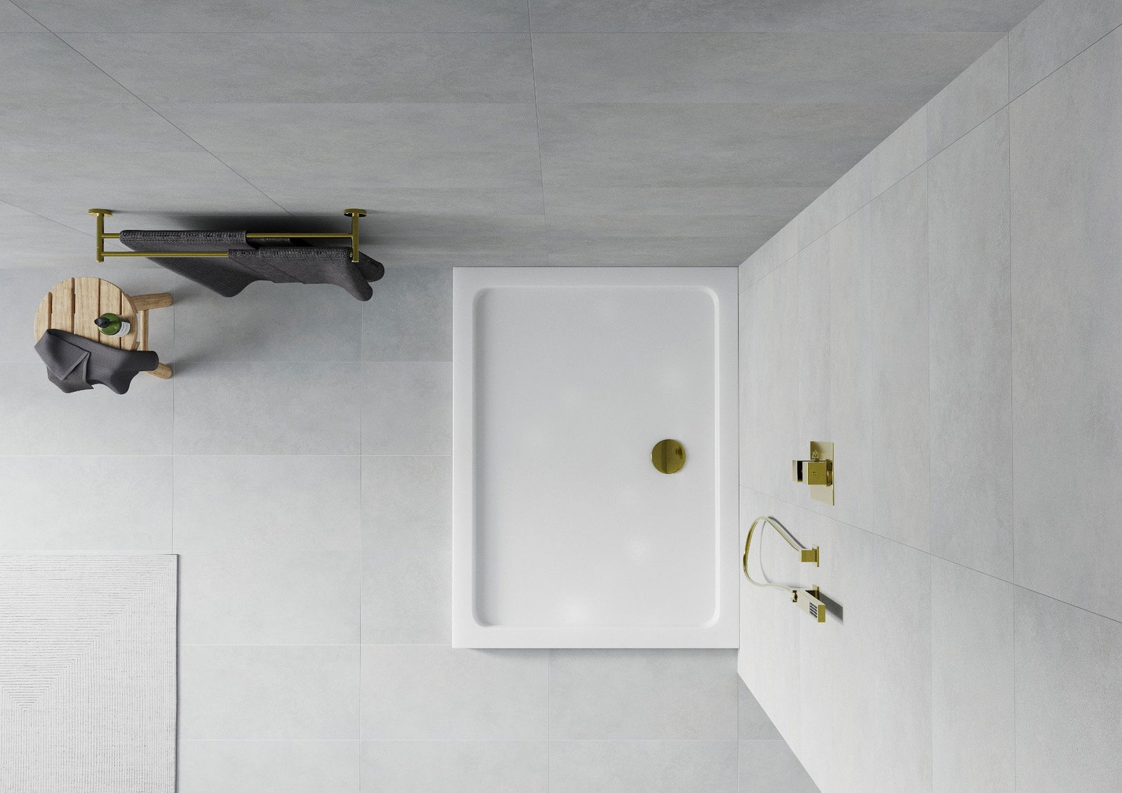 Mexen Flat receveur de douche rectangulaire slim 120 x 100 cm, blanc, siphon doré - 40101012G