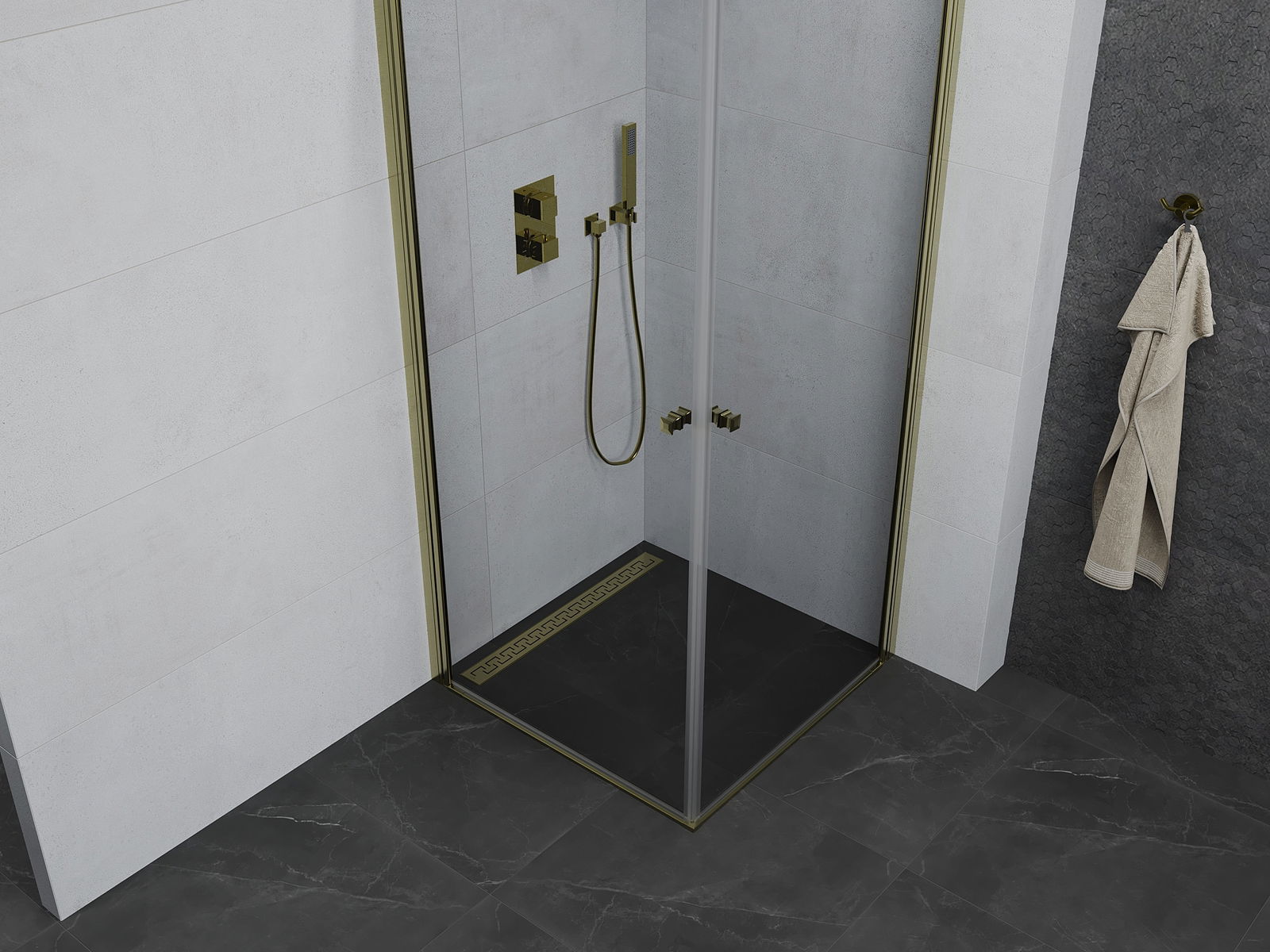 Mexen Pretoria Duo cabine de douche pivotante 90 x 90 cm, transparent, or - 852-090-090-50-00-02