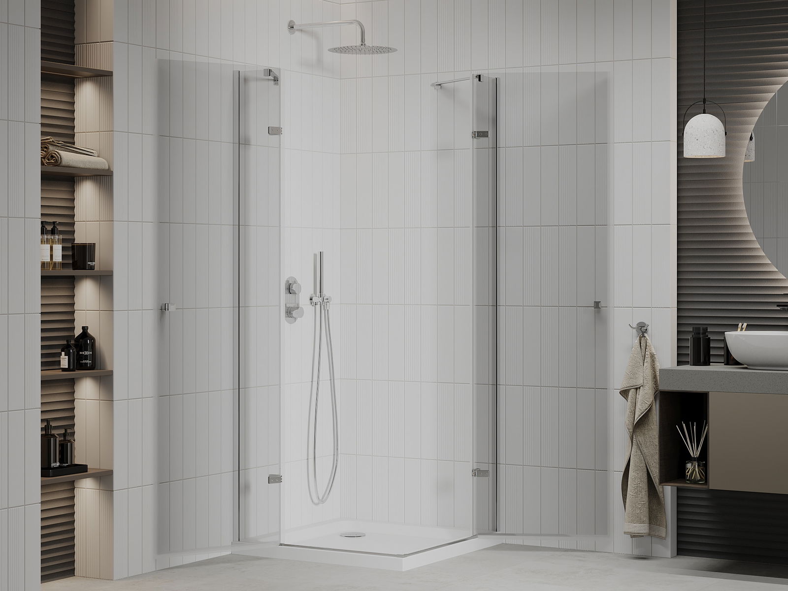 Mexen Roma Duo cabine de douche pivotante 100 x 100 cm, transparent, chrome + receveur Flat - 854-100-100-01-02-4010