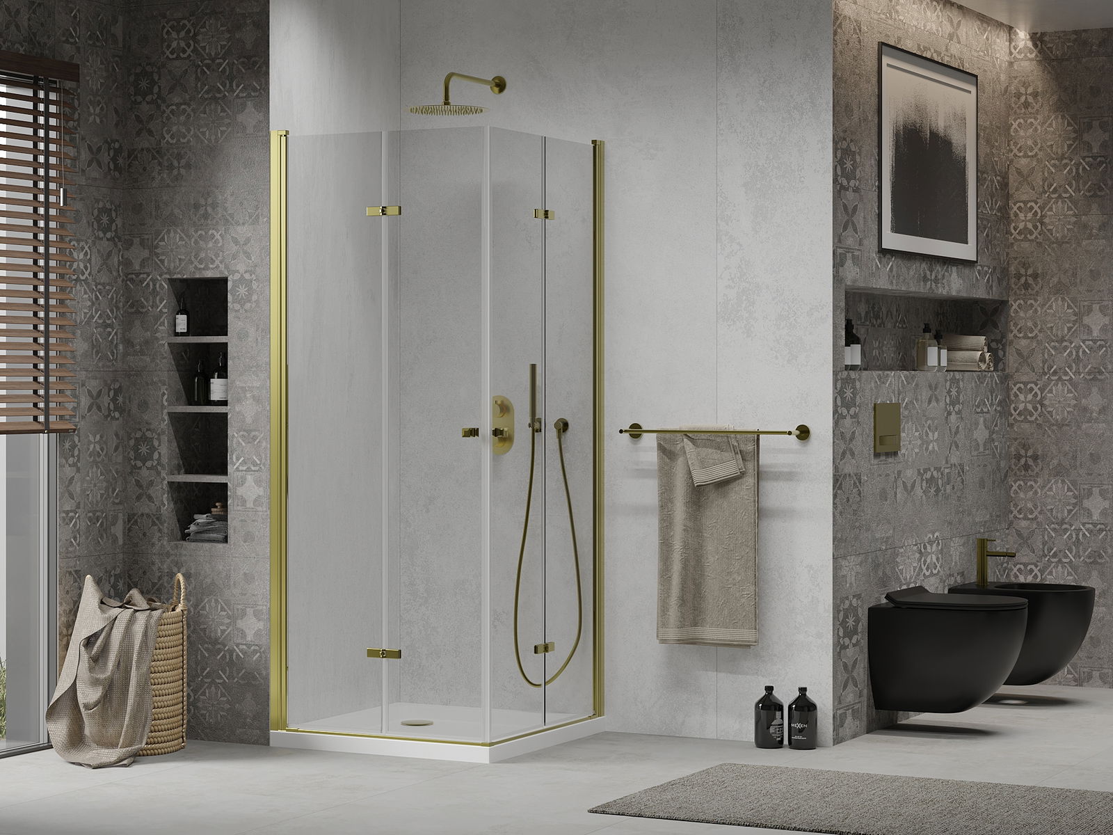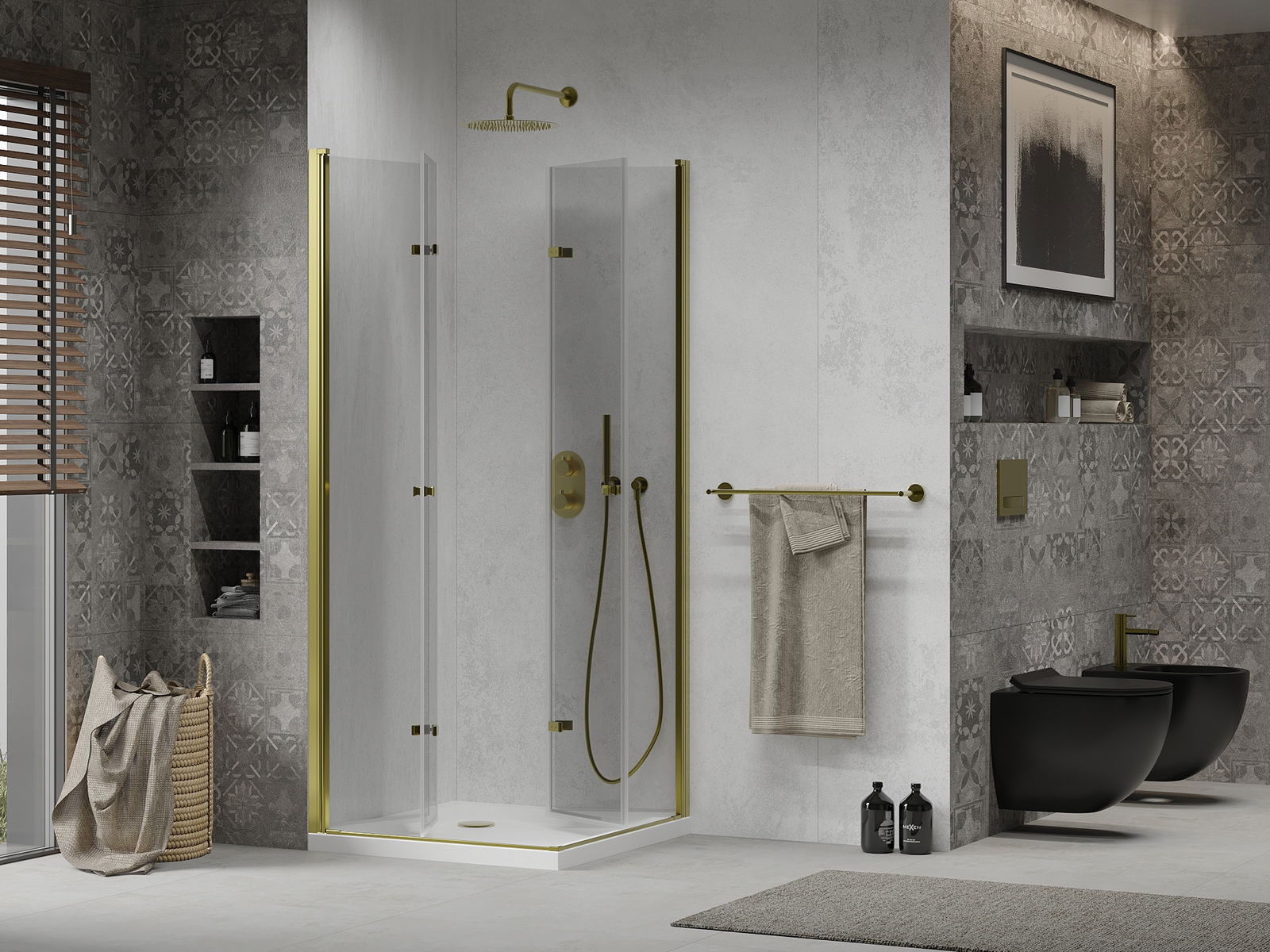 La poignée pratique et confortable est fabriquée en métal durable et résistant. Sa forme élégante, associée à une finition assortie à la couleur des profilés, confère à l'ensemble un style moderne et élégant, soulignant l'esthétique de chaque salle de bains.