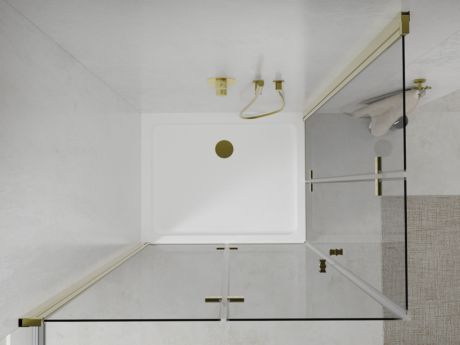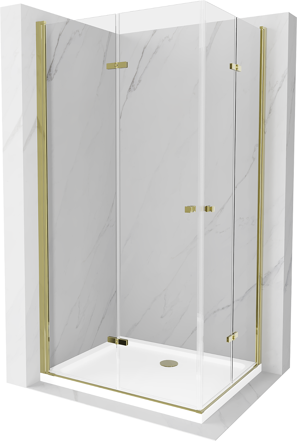 Mexen Lima Duo cabine de douche pliante 90 x 80 cm, transparente, dorée + receveur Flat - 856-090-080-50-02-4010G