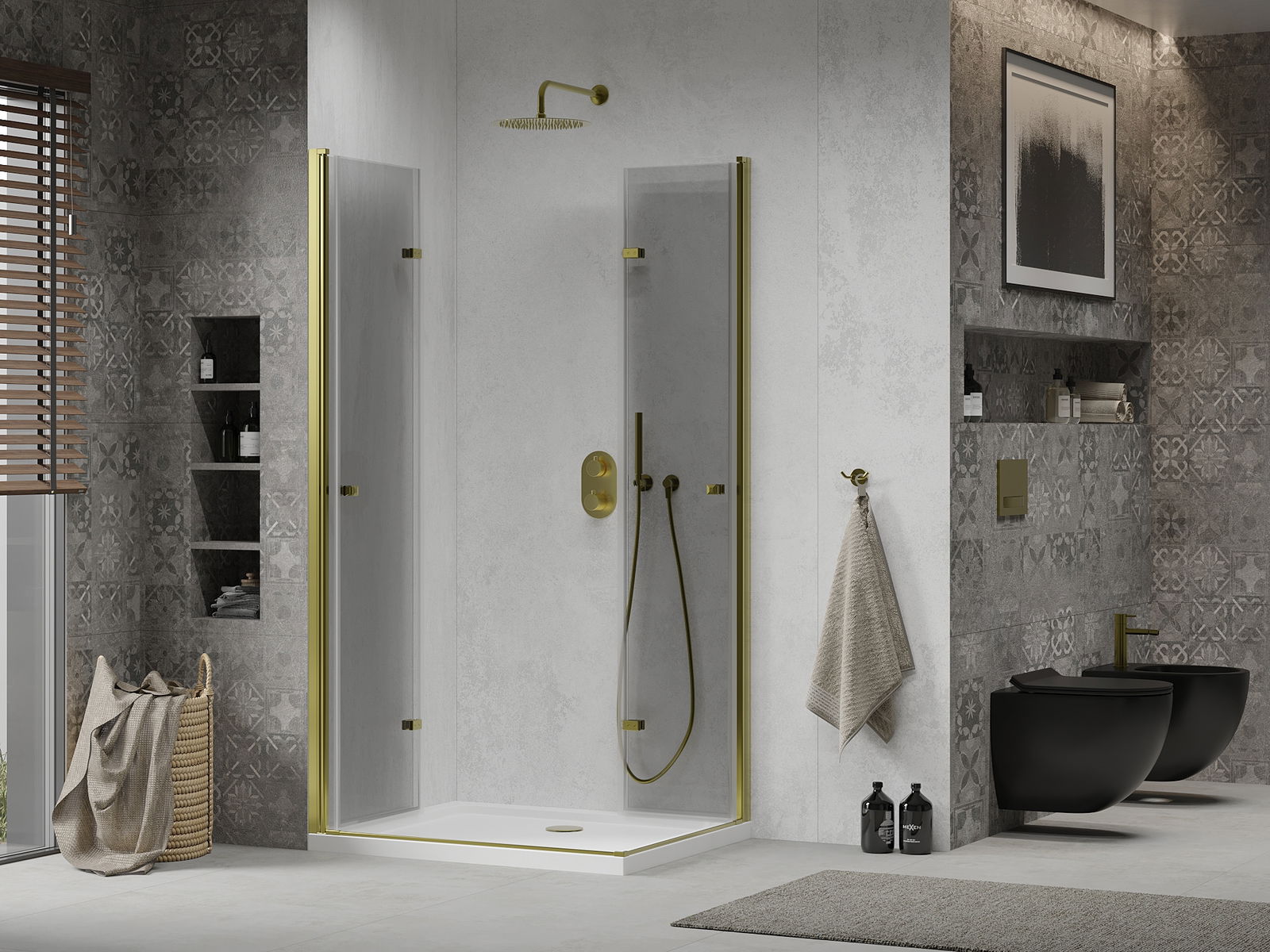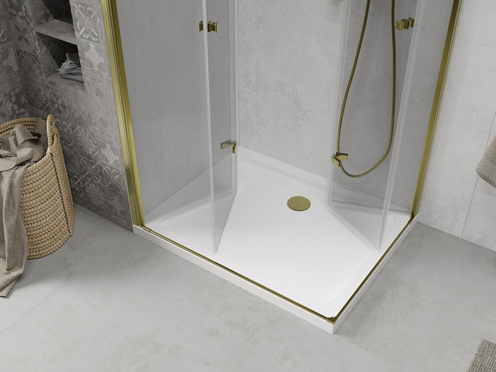 La poignée pratique et confortable est fabriquée en métal durable et résistant. Sa forme élégante, associée à une finition assortie à la couleur des profilés, confère à l'ensemble un style moderne et élégant, soulignant l'esthétique de chaque salle de bains.