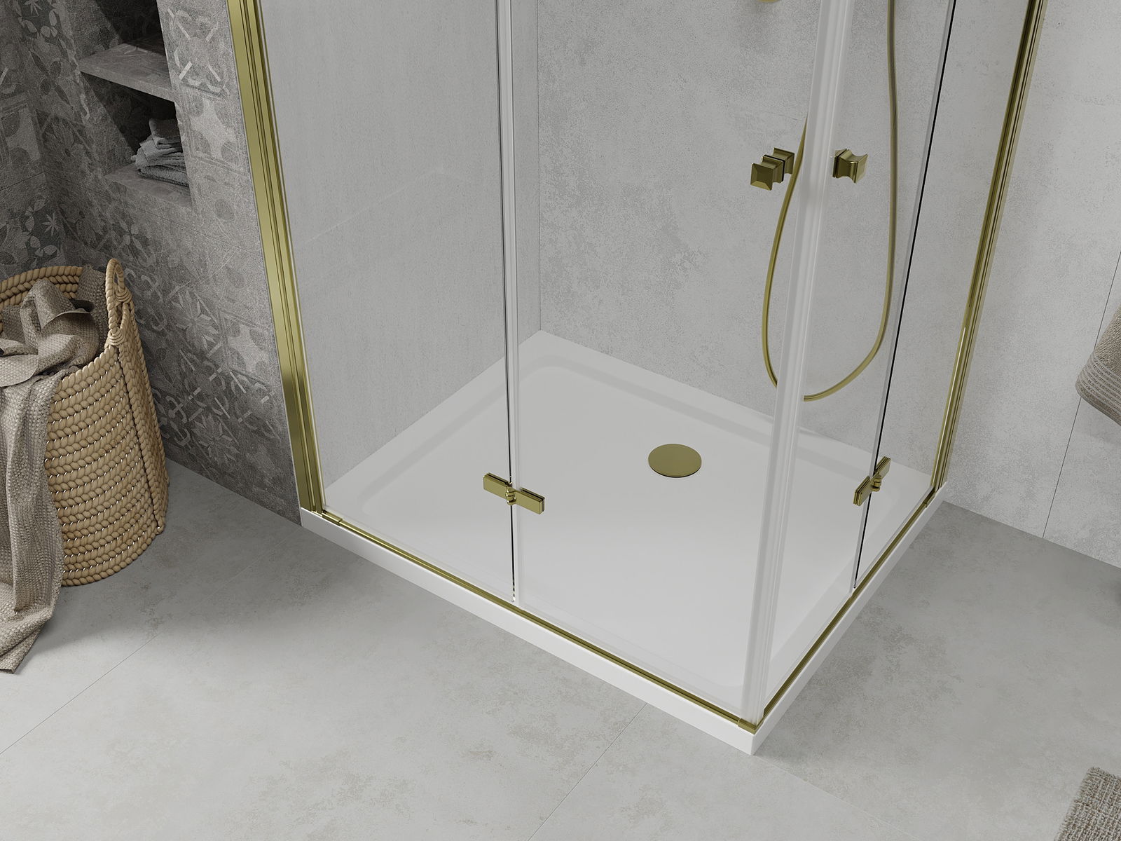 Mexen Lima Duo cabine de douche pliante 100 x 90 cm, transparent, dorée + receveur de douche plat - 856-100-090-50-02-4010G