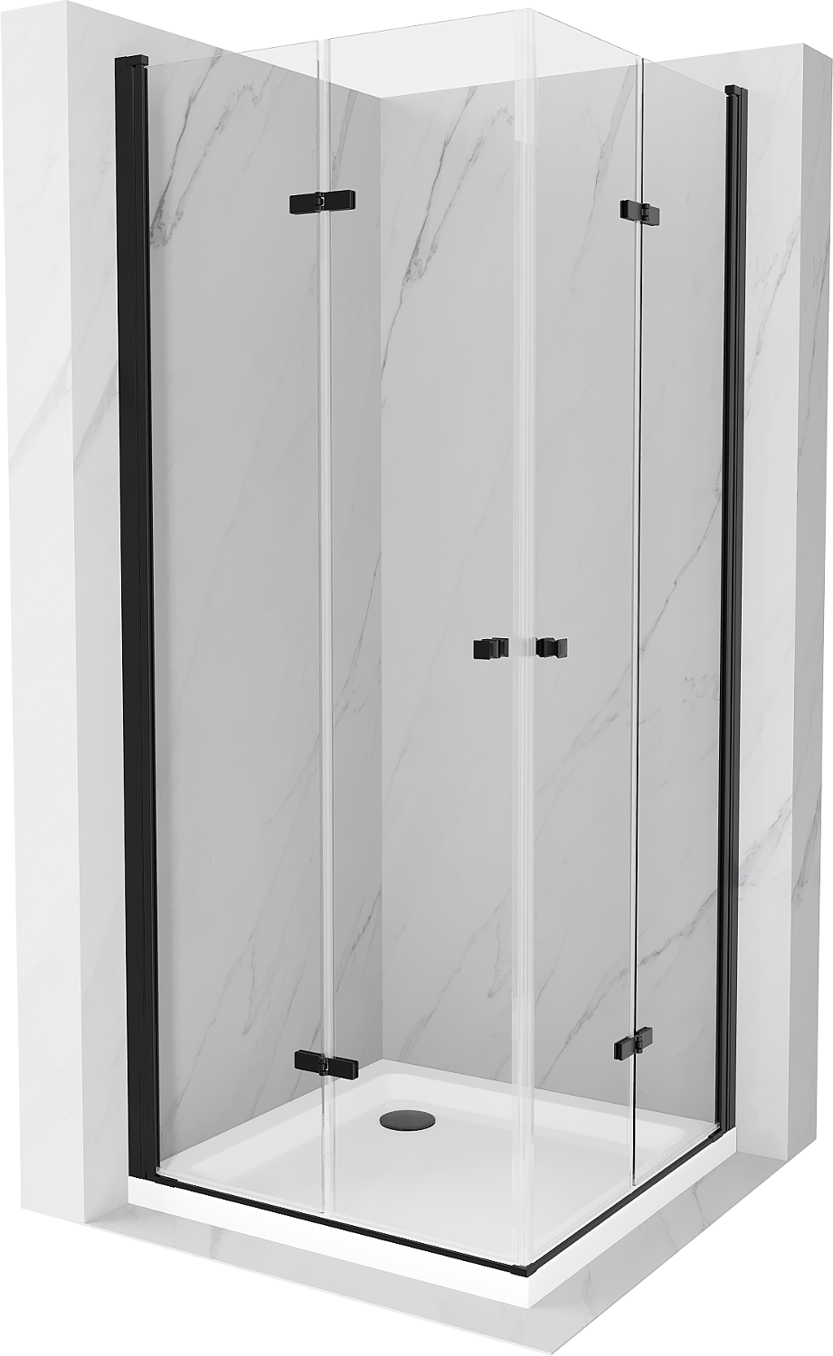 Mexen Lima Duo cabine de douche pliante 80 x 80 cm, transparent, noir + receveur Flat - 856-080-080-70-02-4010B