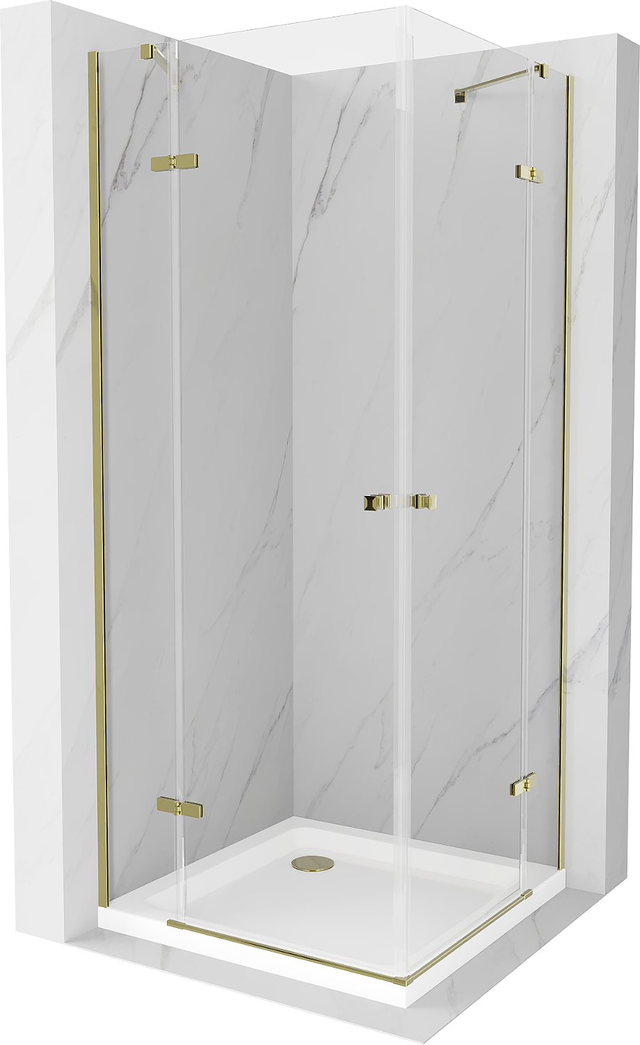 Mexen Roma Duo cabine de douche pivotante 80 x 80 cm, transparente, dorée + receveur Flat - 854-080-080-50-02-4010G