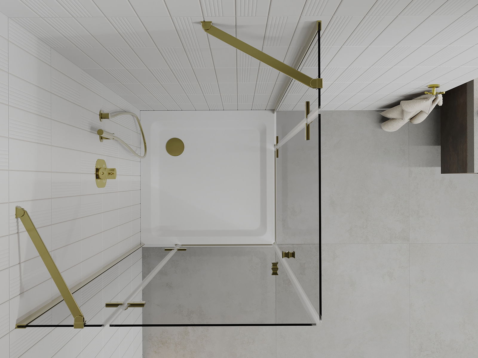 Mexen Roma Duo cabine de douche pivotante 100 x 100 cm, transparent, dorée + receveur Flat - 854-100-100-50-02-4010G