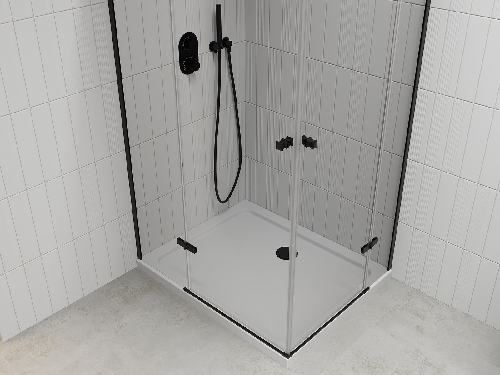 Mexen Roma Duo cabine de douche battante 80 x 70 cm, transparent, noir + receveur de douche Plat - 854-080-070-70-02-4010B