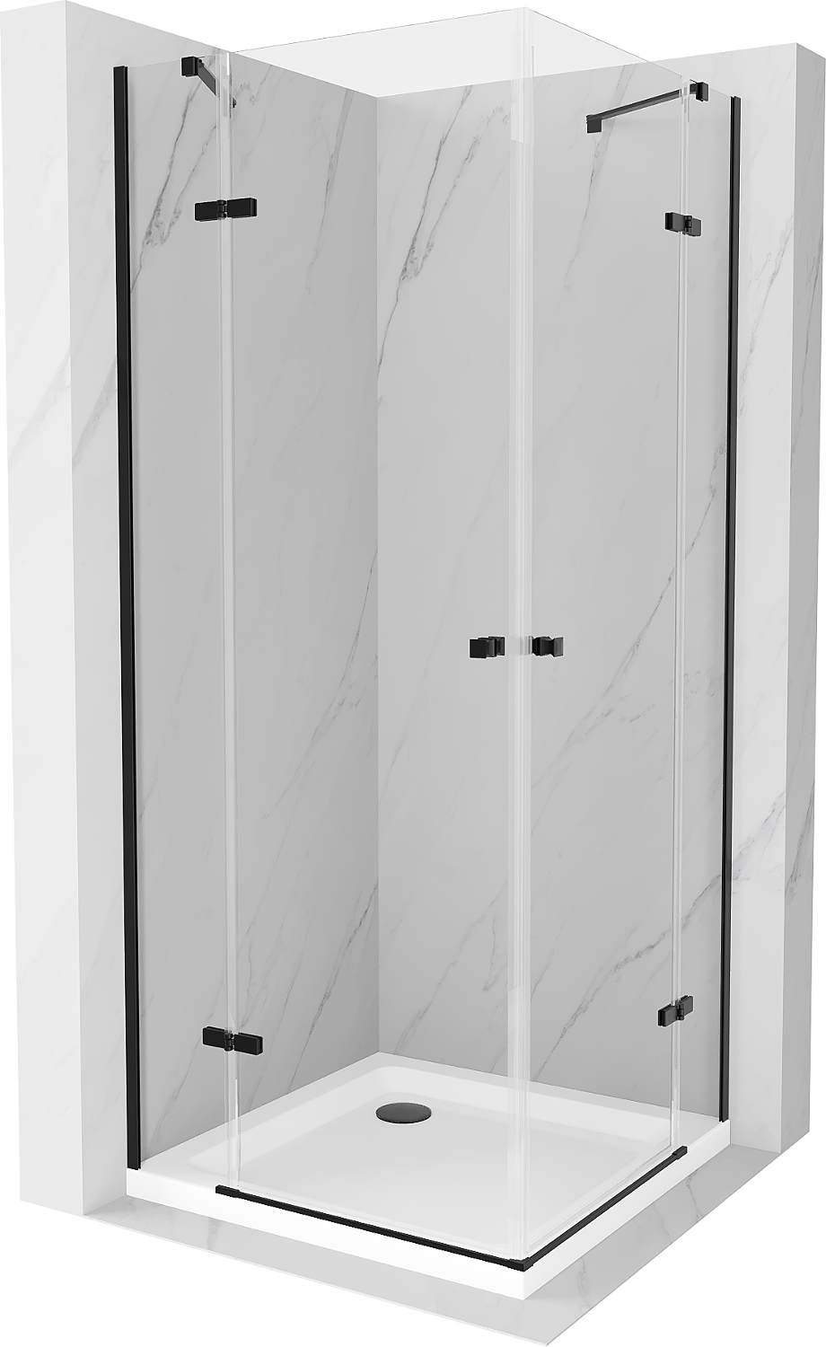 Mexen Roma Duo cabine de douche pivotante 80 x 80 cm, transparent, noir + receveur de douche Flat - 854-080-080-70-02-4010B