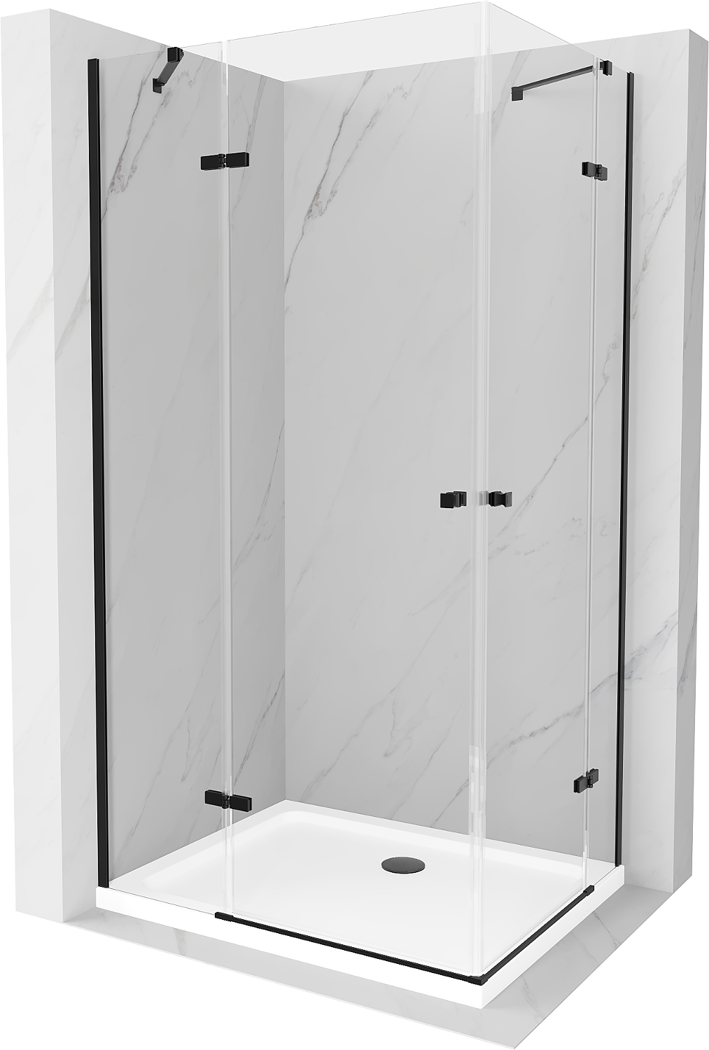 Mexen Roma Duo cabine de douche à porte battante 100 x 90 cm, transparente, noire + receveur Flat - 854-100-090-70-02-4010B