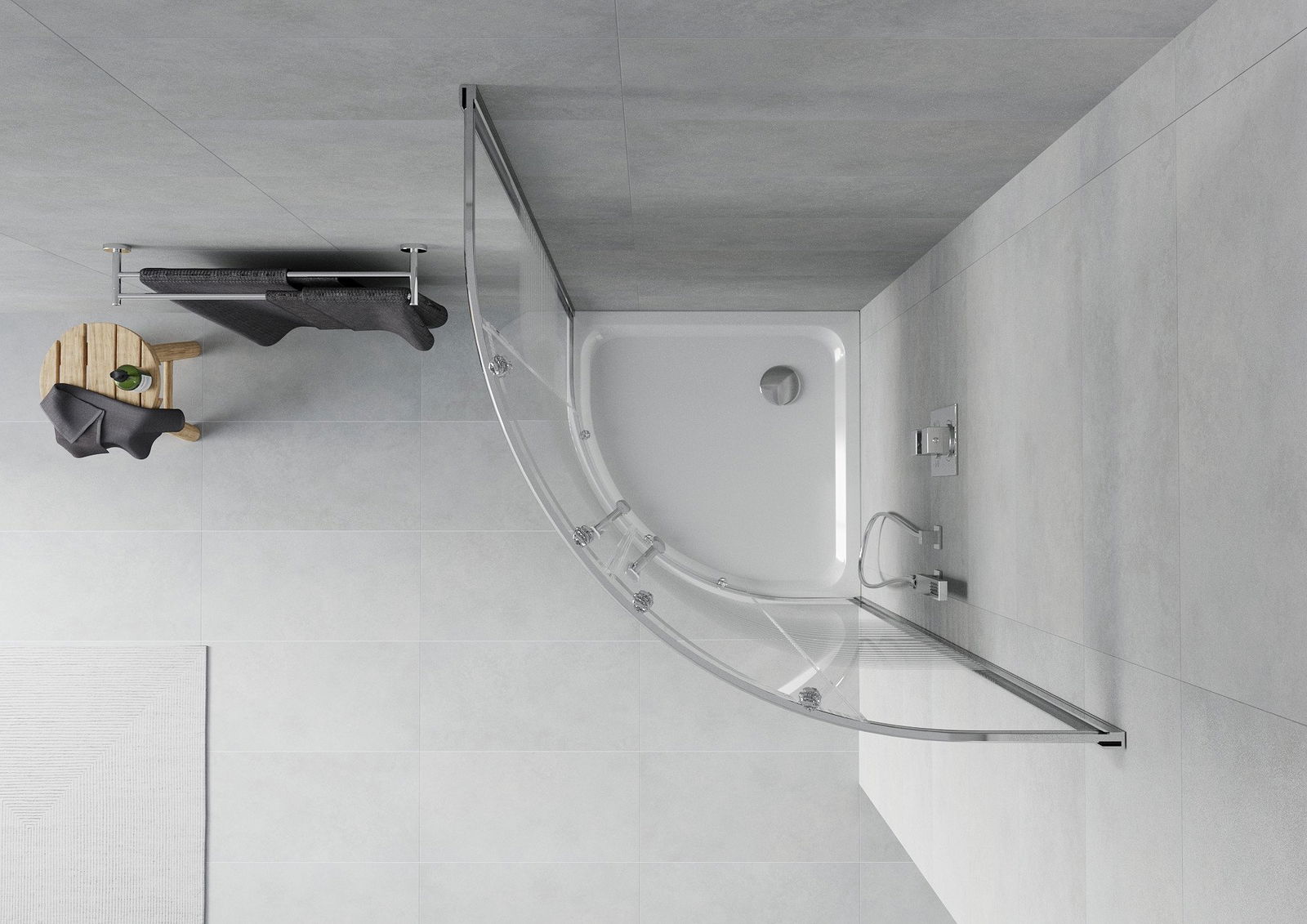 La poignée pratique et confortable est fabriquée en métal durable et résistant. Sa forme élégante, associée à une finition assortie à la couleur des profilés, confère à l'ensemble un style moderne et élégant, soulignant l'esthétique de chaque salle de bains.