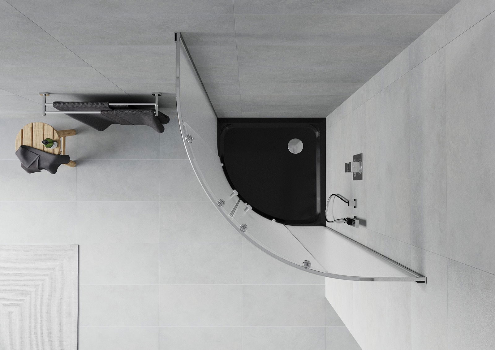 Mexen Rio cabine de douche semi-circulaire 80 x 80 cm, givré, chrome + receveur plat, noir - 863-080-080-01-30-4170