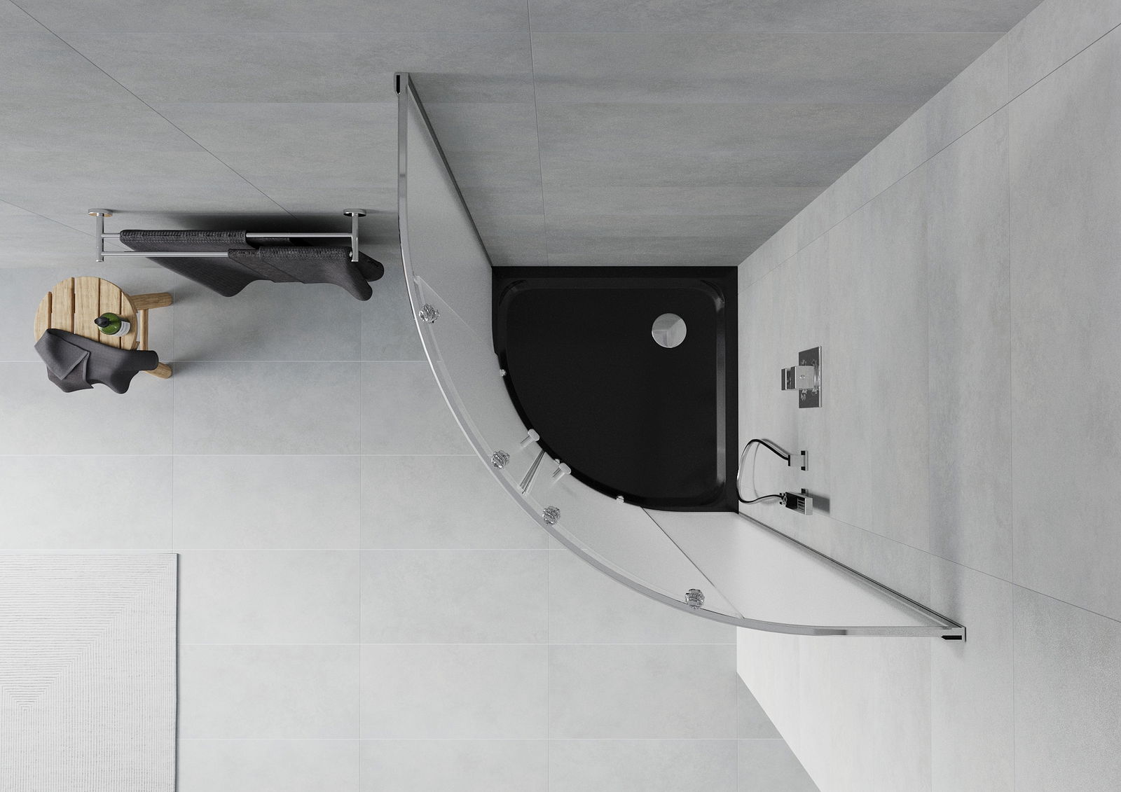 Mexen Rio cabine de douche semi-circulaire 90 x 90 cm, givré, chrome + receveur Flat, noir - 863-090-090-01-30-4170