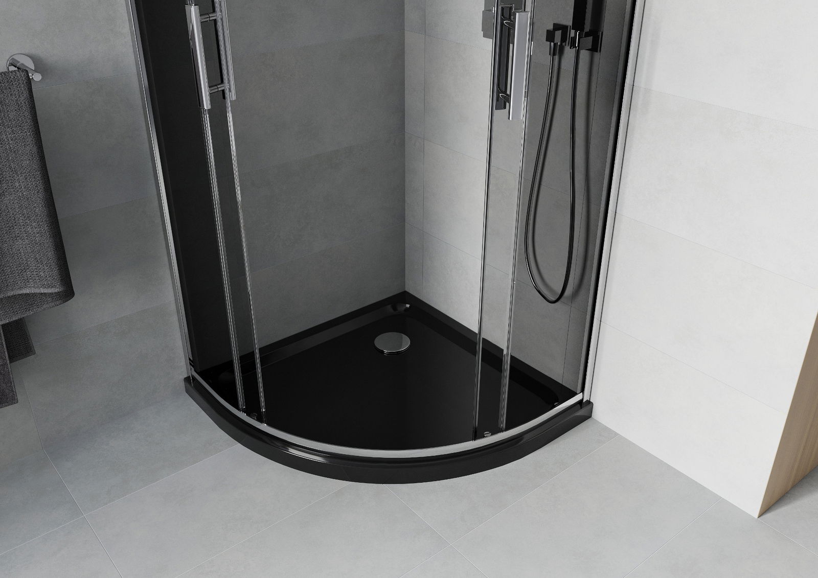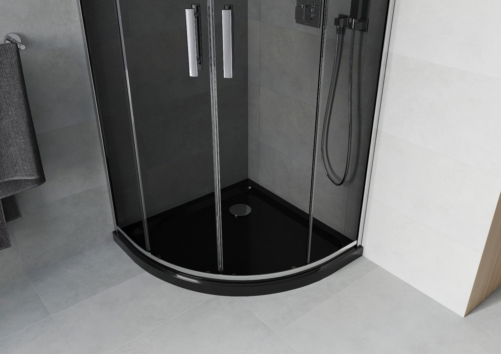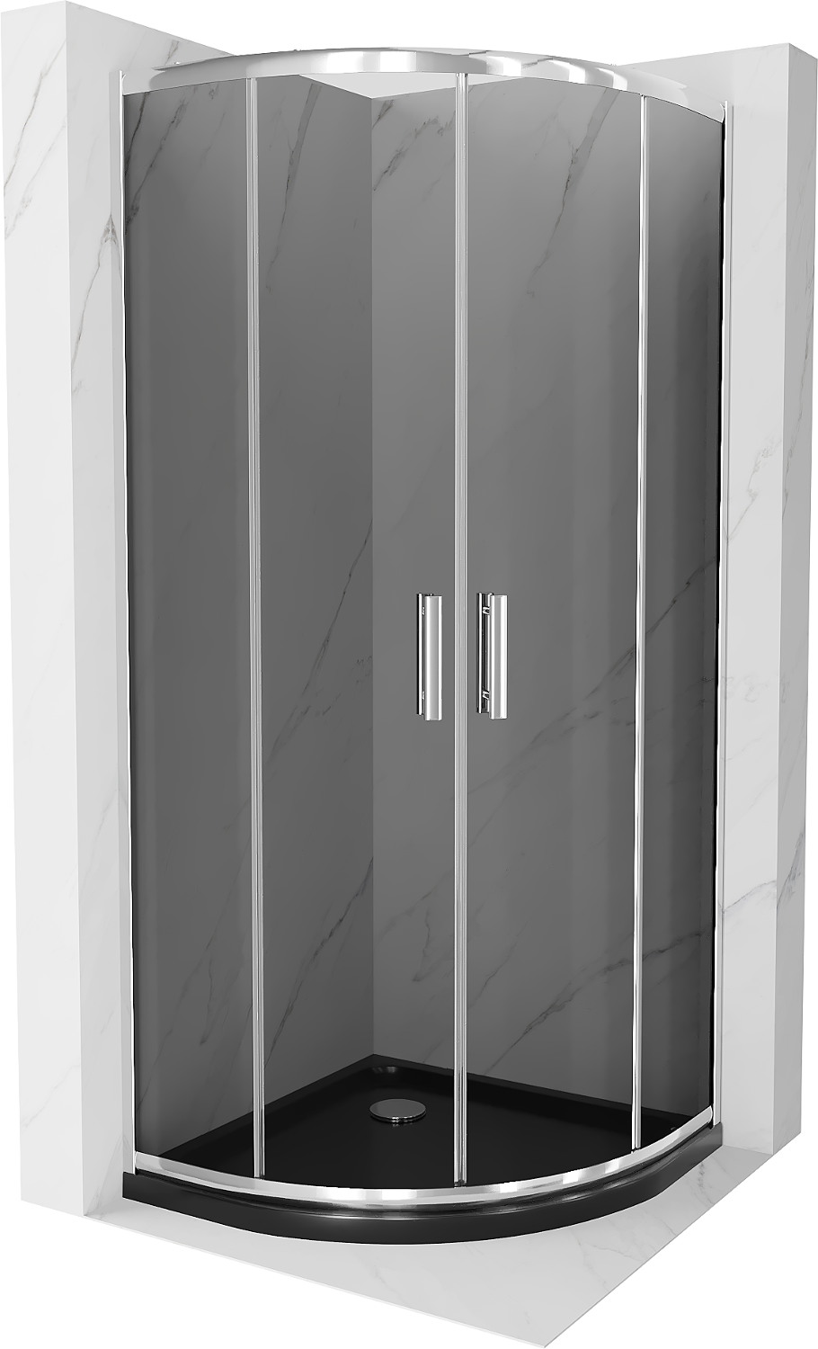 Mexen Rio cabine de douche semi-circulaire 80 x 80 cm, graphite, chrome + receveur Flat, noir - 863-080-080-01-40-4170
