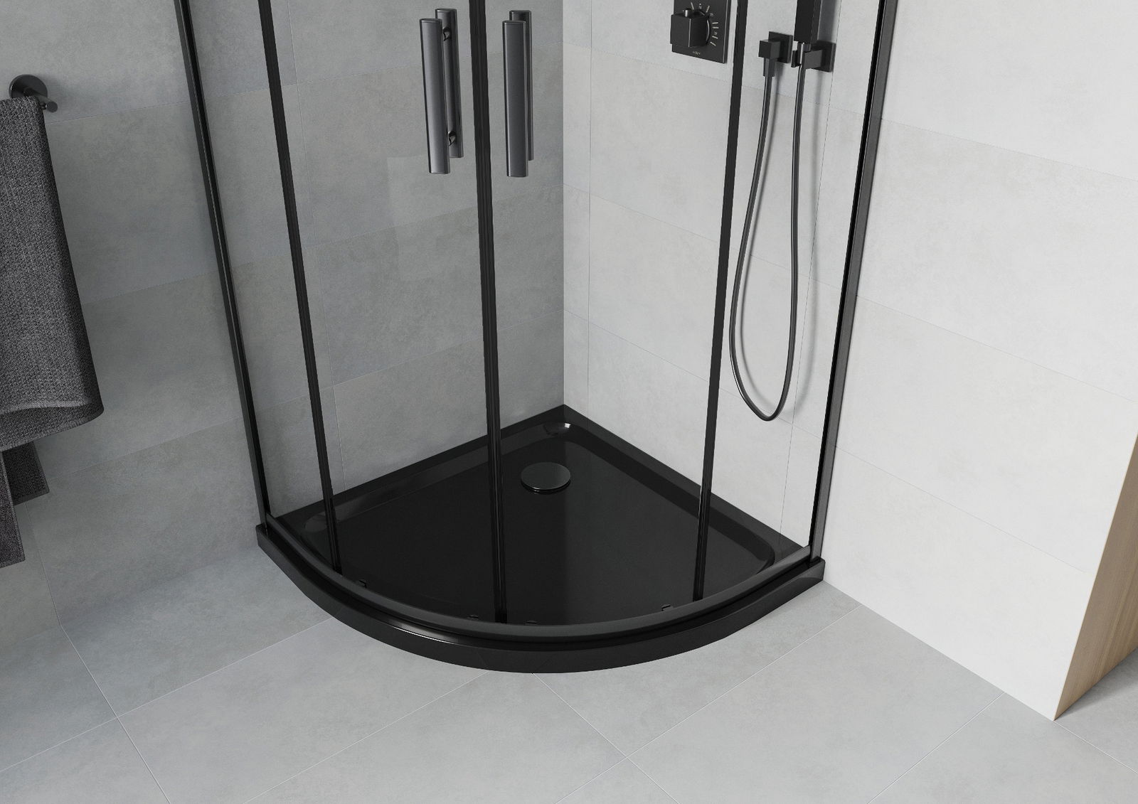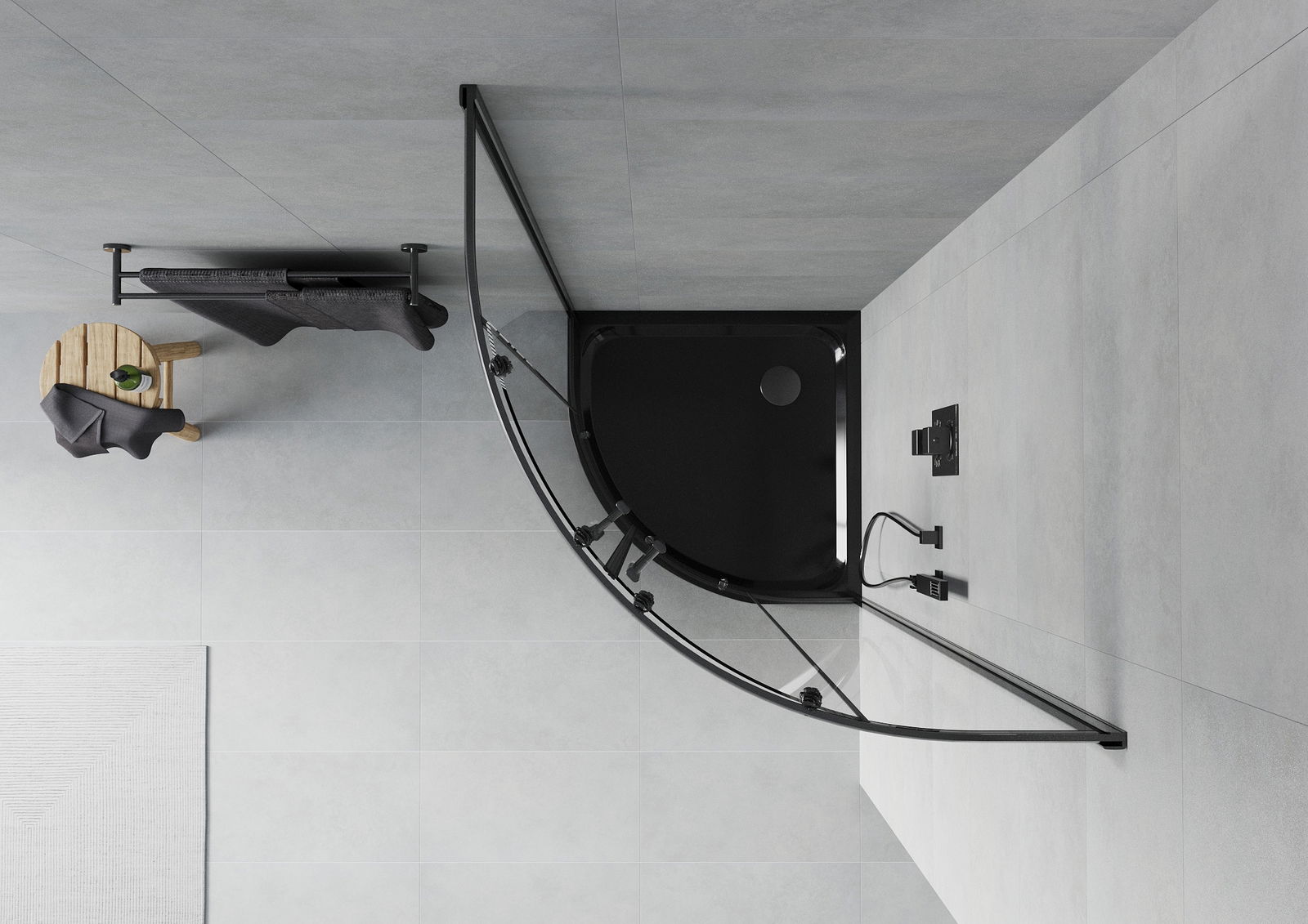 Mexen Rio cabine de douche demi-circulaire 90 x 90 cm, transparent, noir + receveur Flat, noir - 863-090-090-70-00-4170B