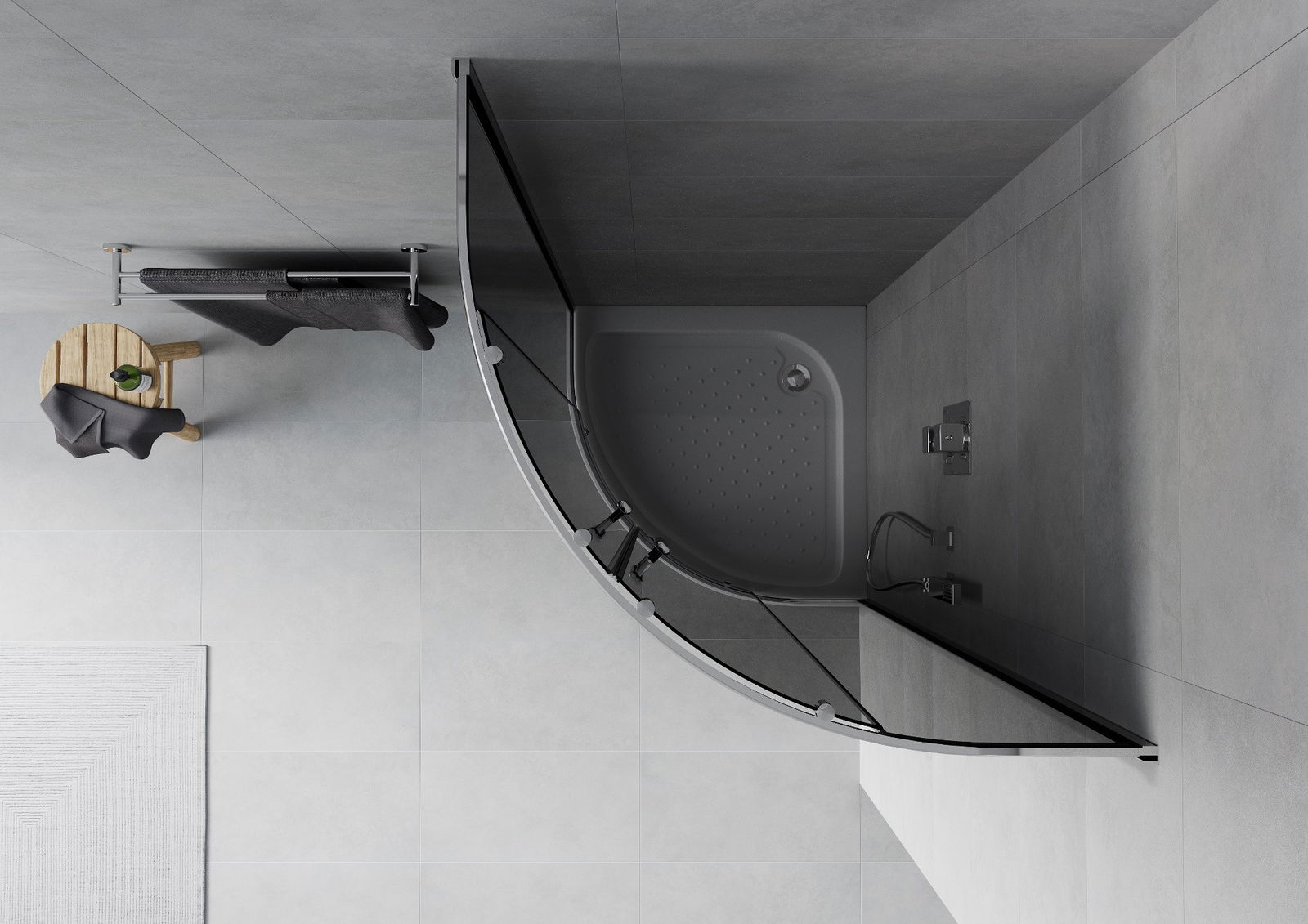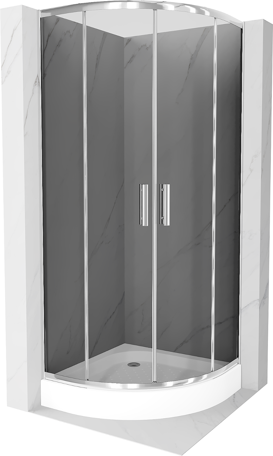 Mexen Rio cabine de douche semi-circulaire 80 x 80 cm, graphite, chrome + receveur de douche, blanc - 863-080-080-01-40-4710