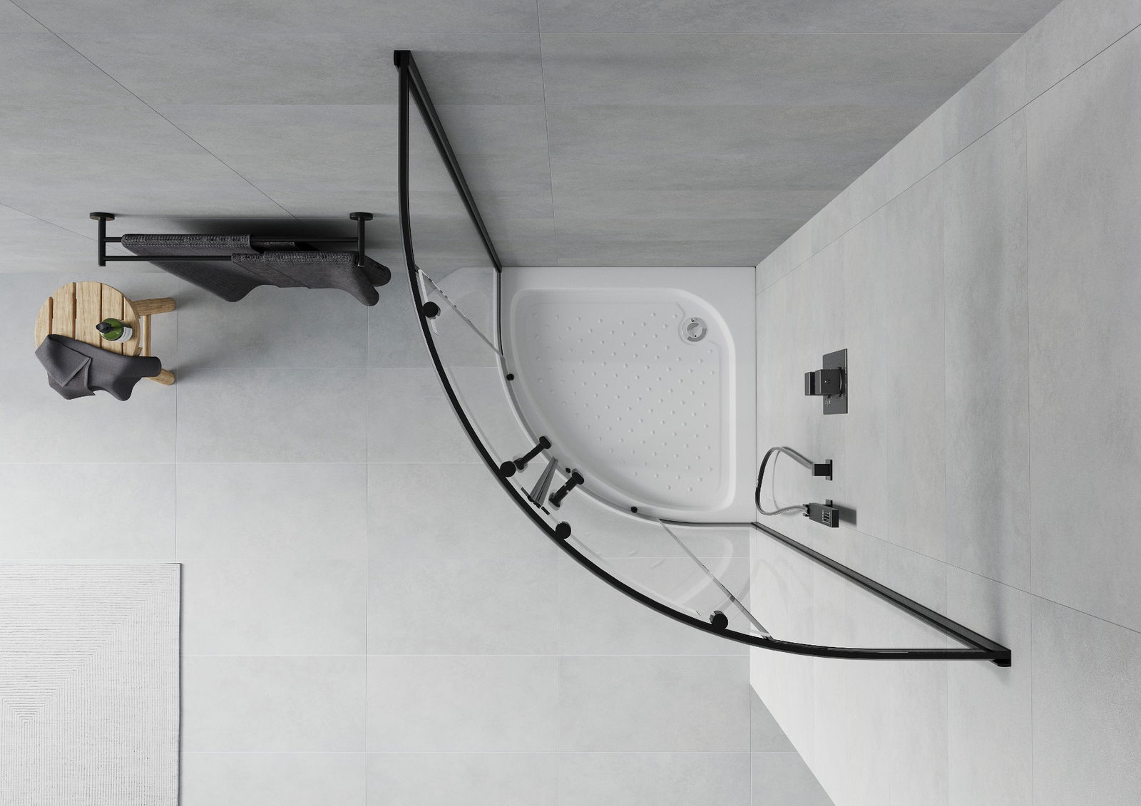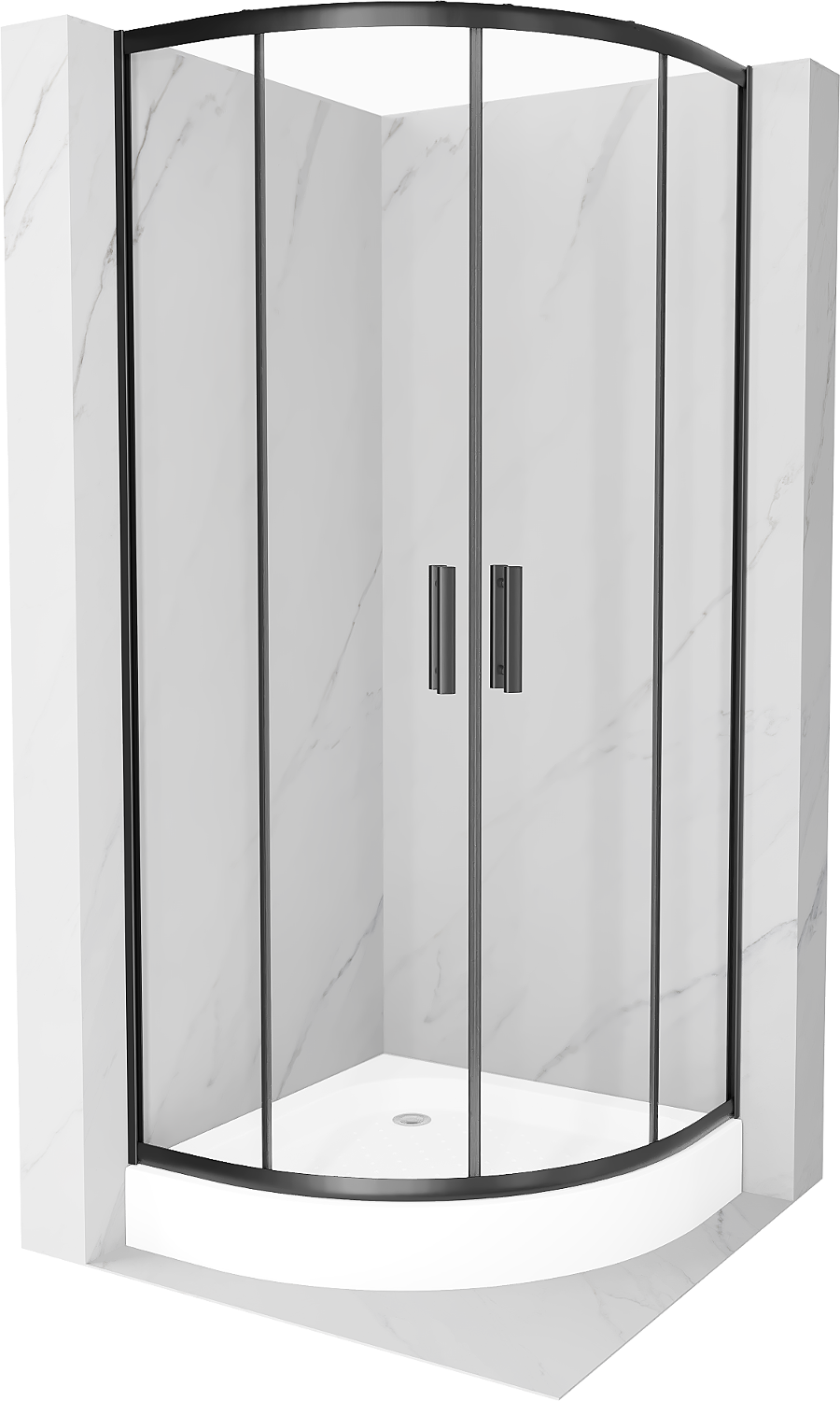 Mexen Rio cabine de douche demi-circulaire 70 x 70 cm, transparente, noire + bac, blanc - 863-070-070-70-00-4710