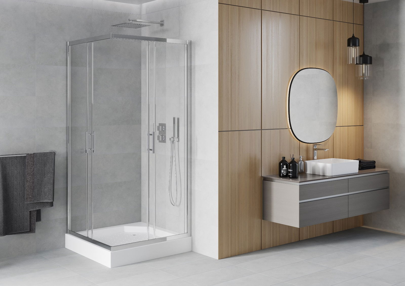 Les portes coulissantes se déplacent sur des rails spéciaux et ne nécessitent pas d'espace supplémentaire pour s'ouvrir. Elles conviennent donc aux petites salles de bains. Grâce à leurs doubles roulettes en plastique résistant, leur mouvement est fluide.