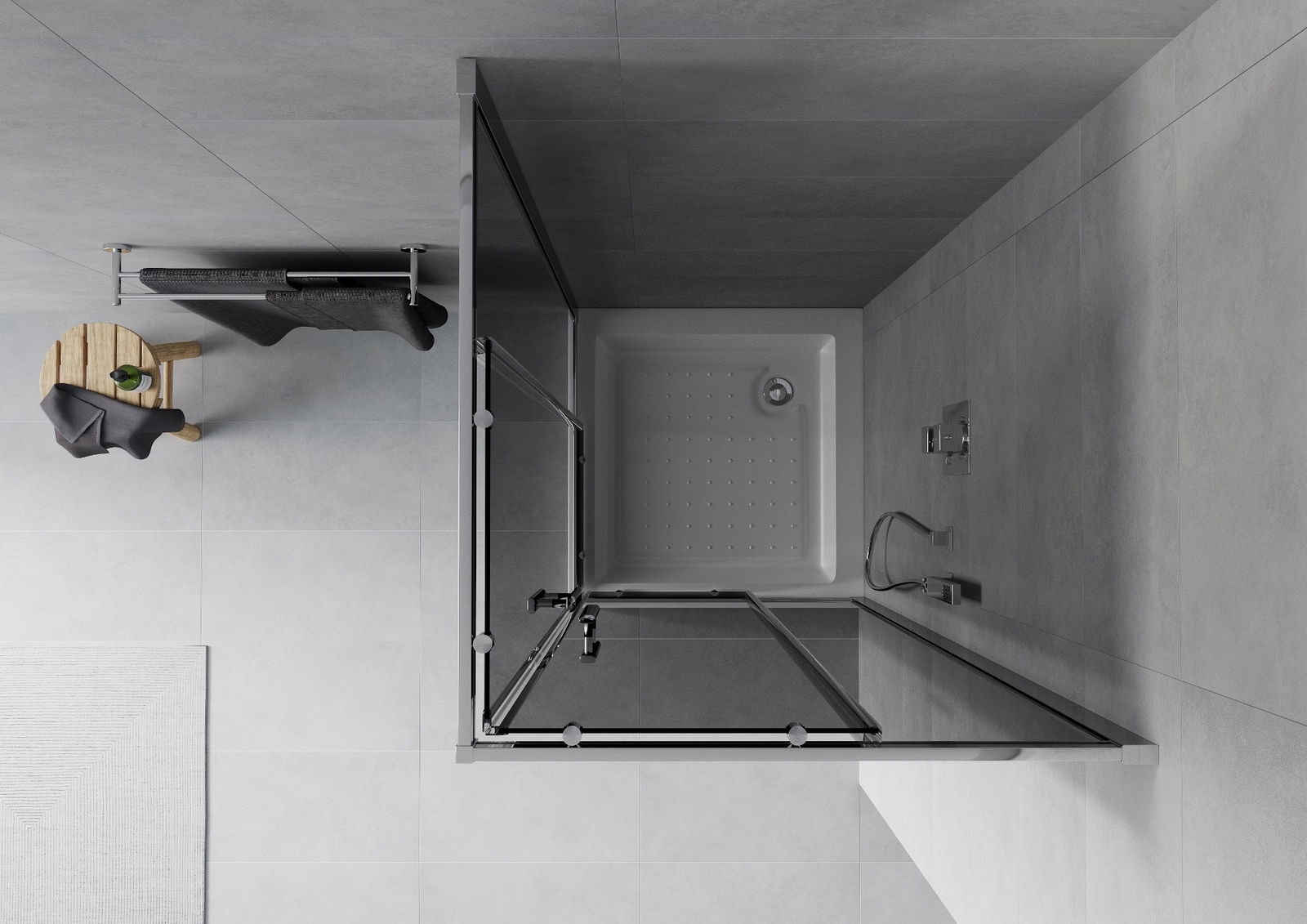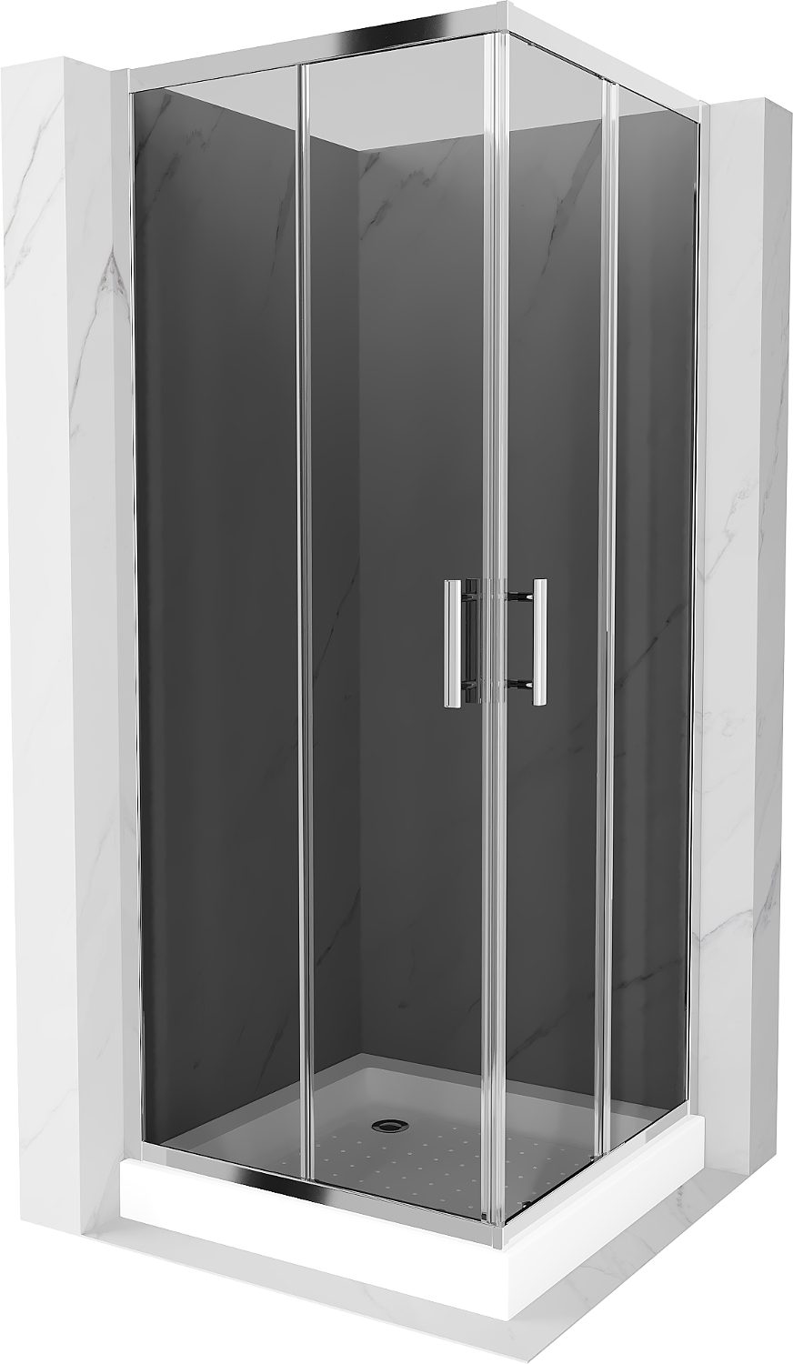 Mexen Rio cabine de douche carrée 80 x 80 cm, graphite, chrome + receveur Rio, blanc - 860-080-080-01-40-4510