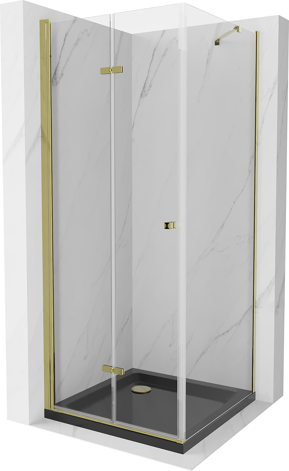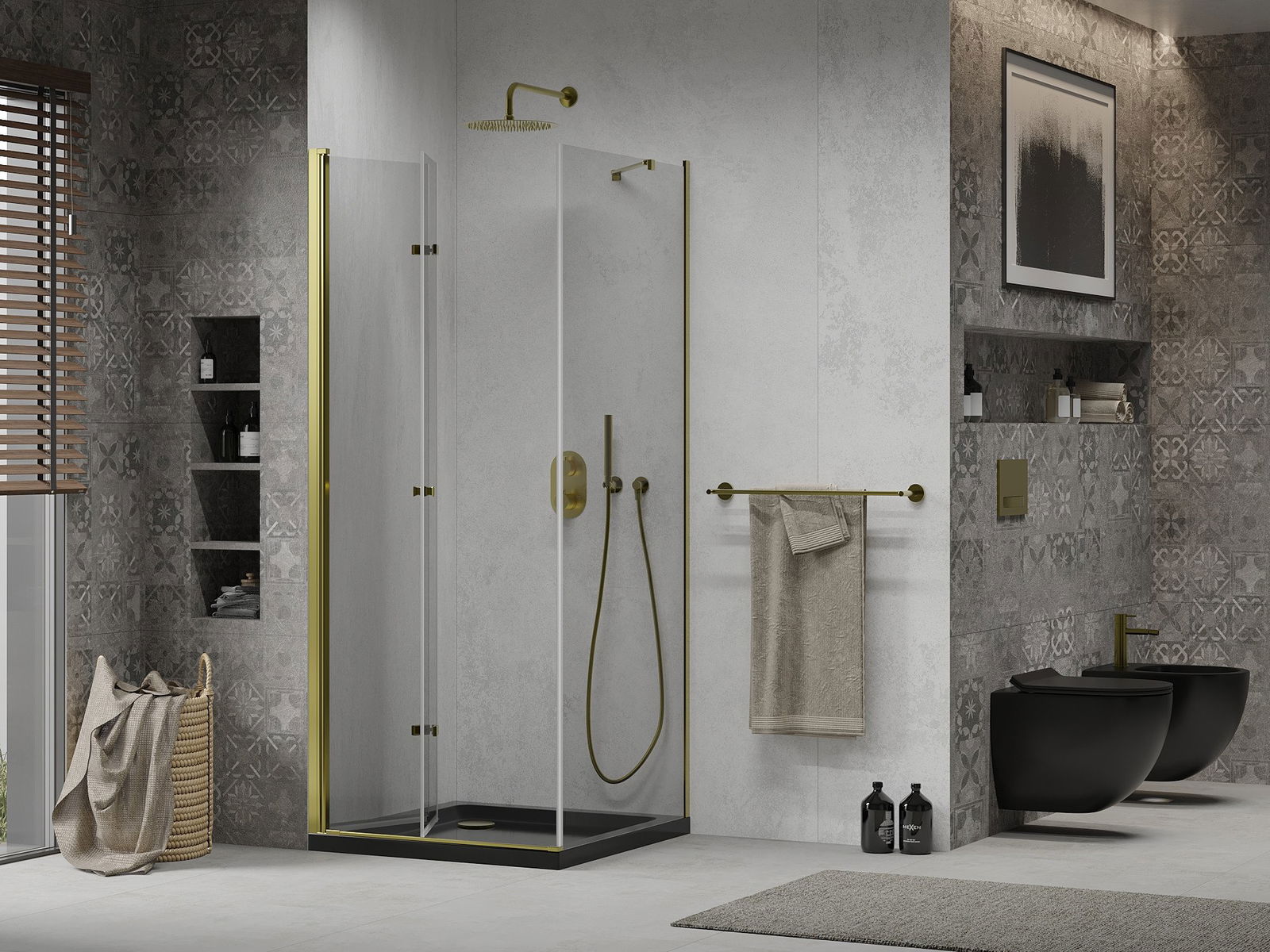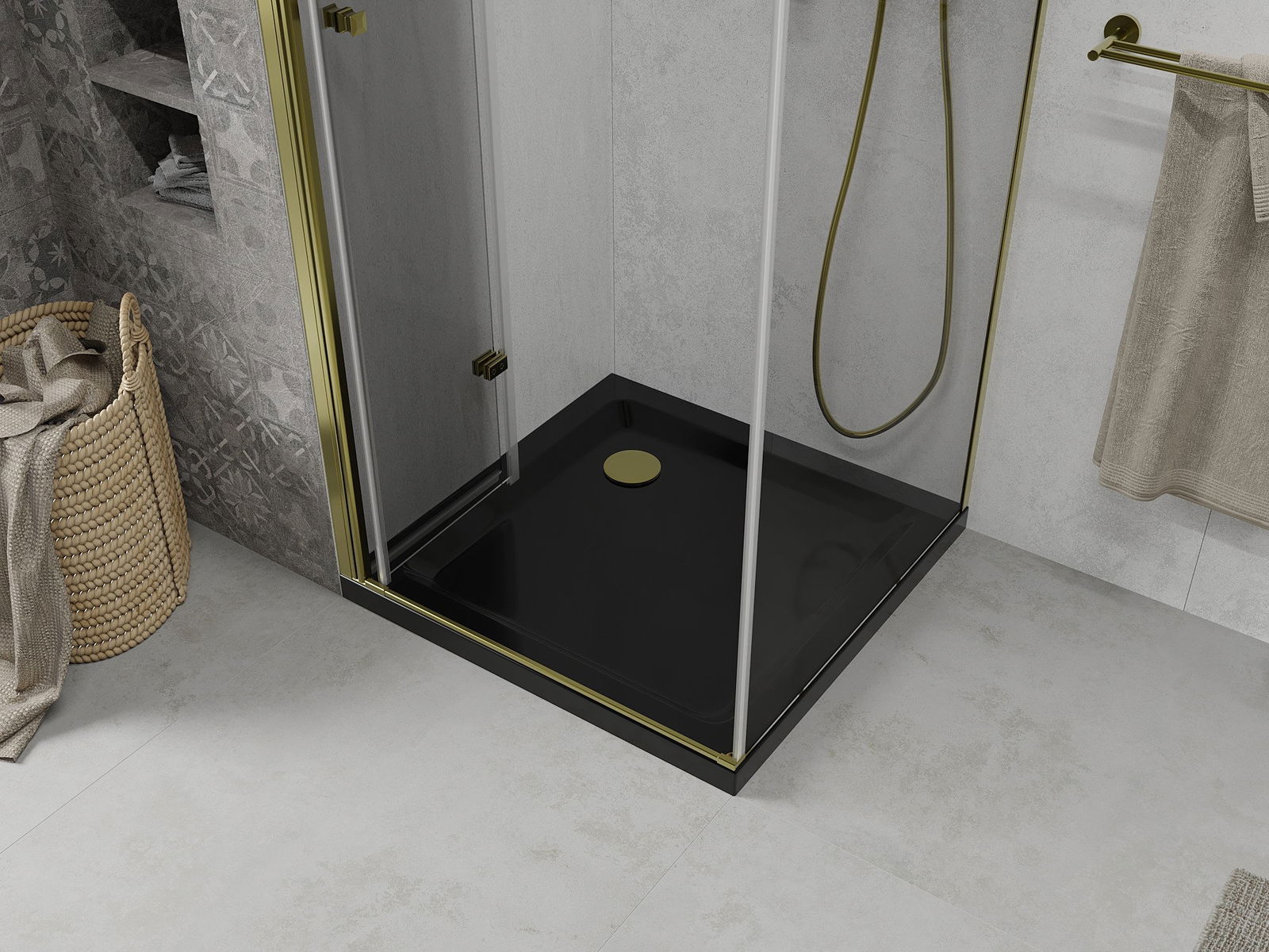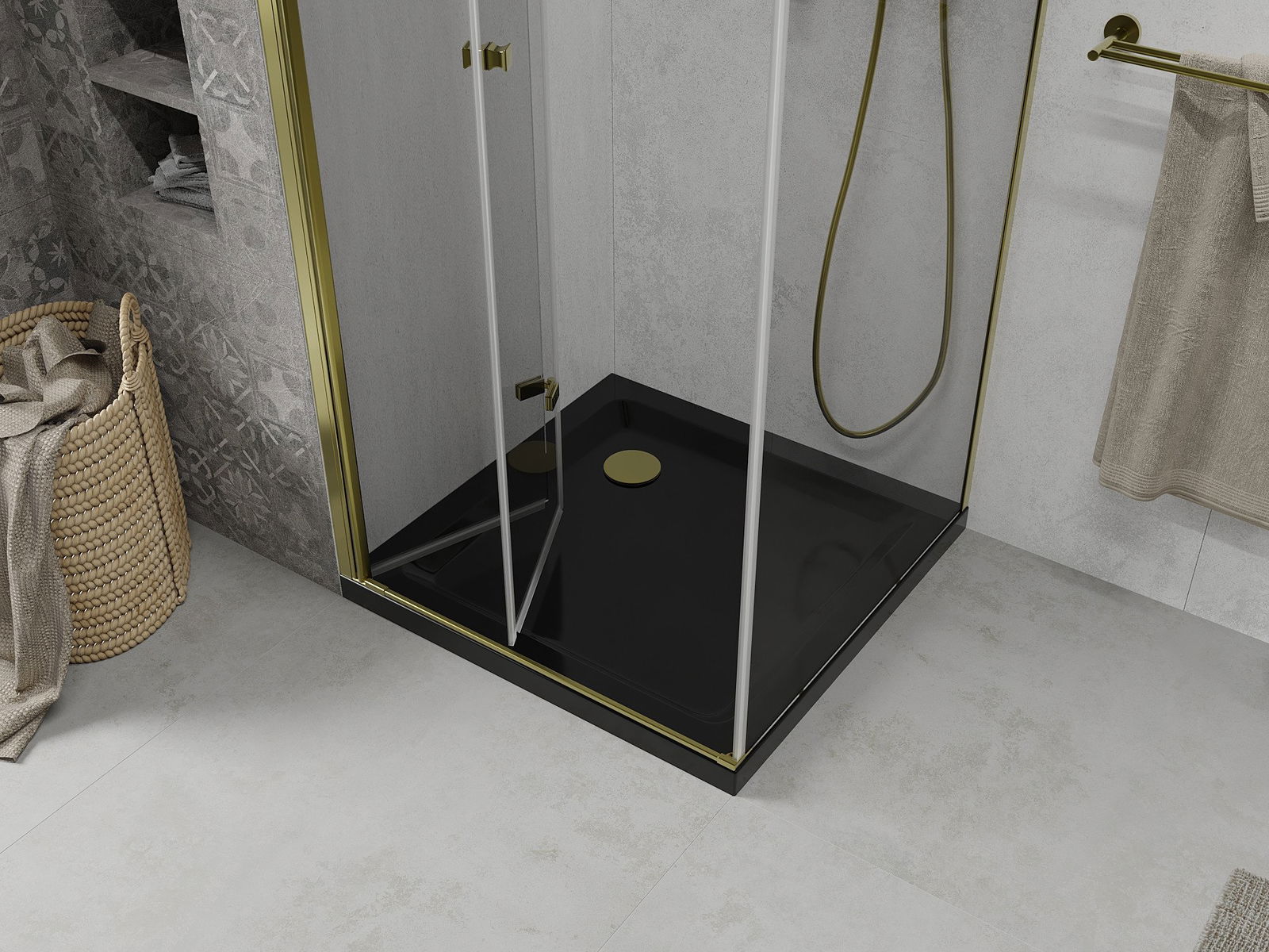 Mexen Lima cabine de douche pliante 80 x 80 cm, transparent, dorée + receveur Flat, noir - 856-080-080-50-00-4070G