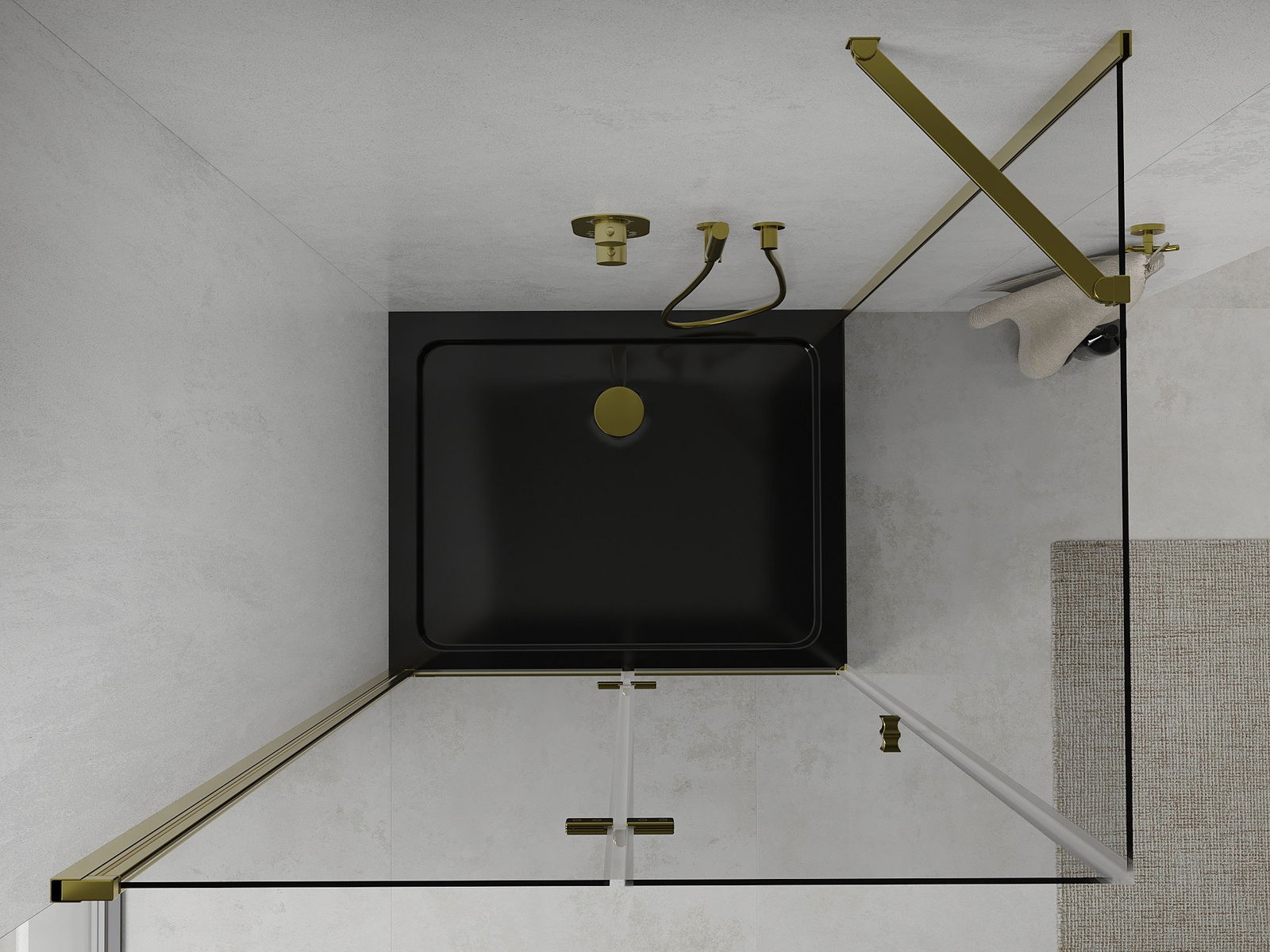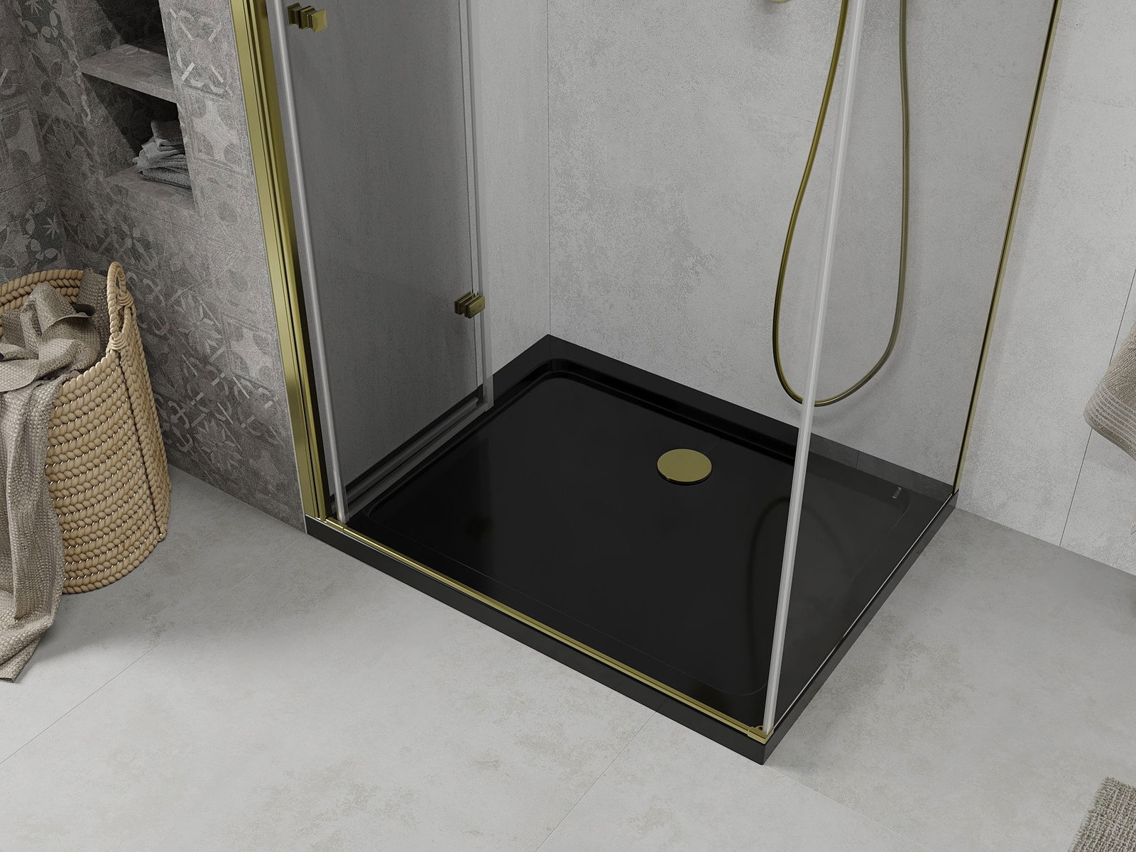 Mexen Lima cabine de douche pliante 80 x 100 cm, transparent, or + receveur Flat, noir - 856-080-100-50-00-4070G