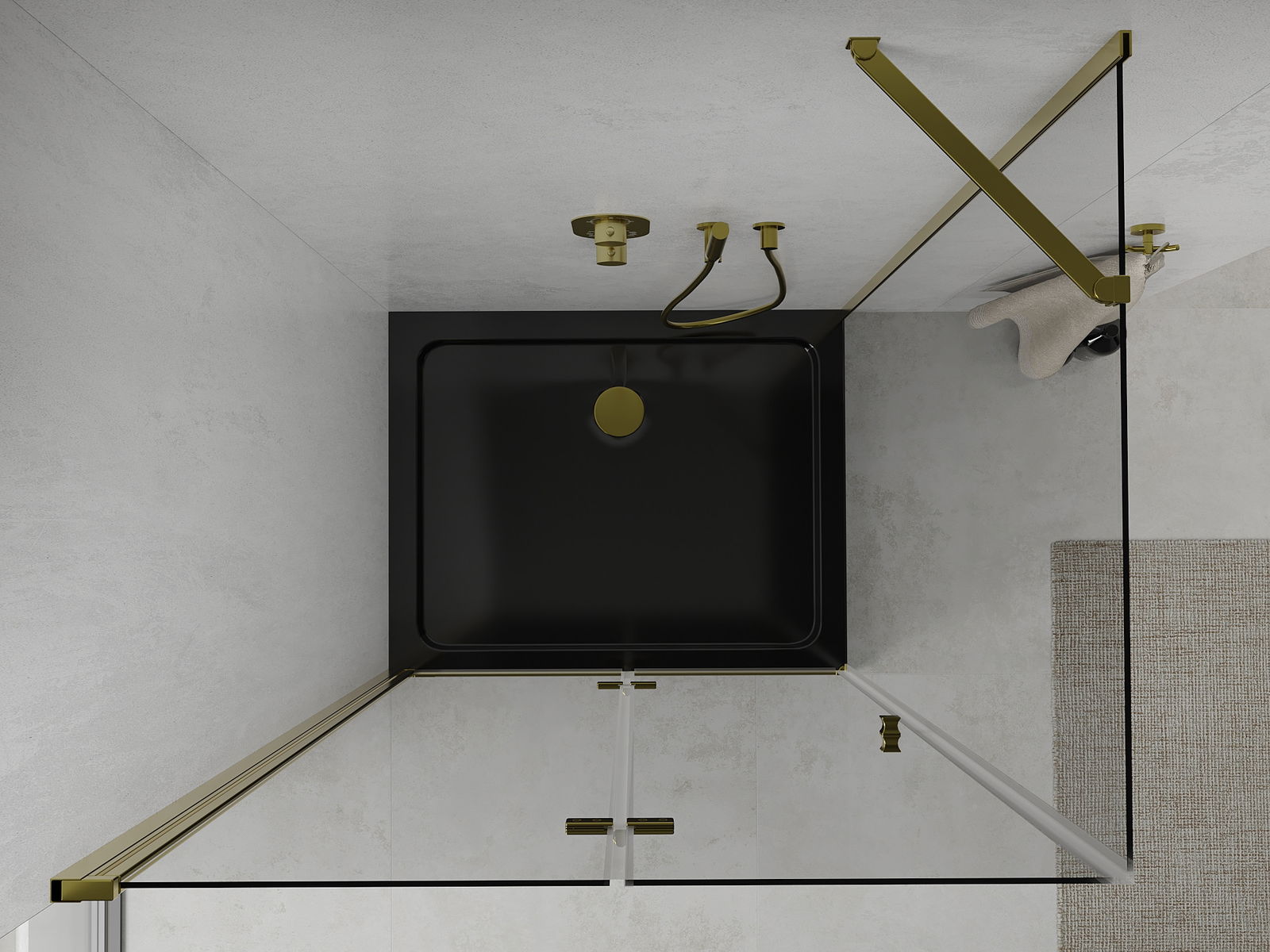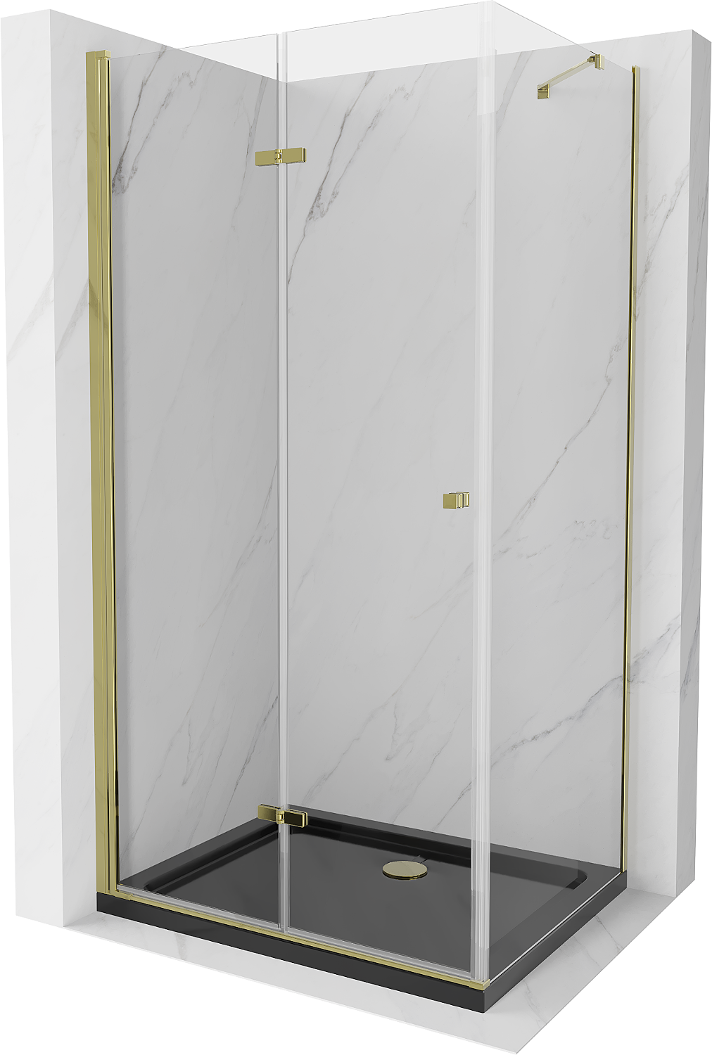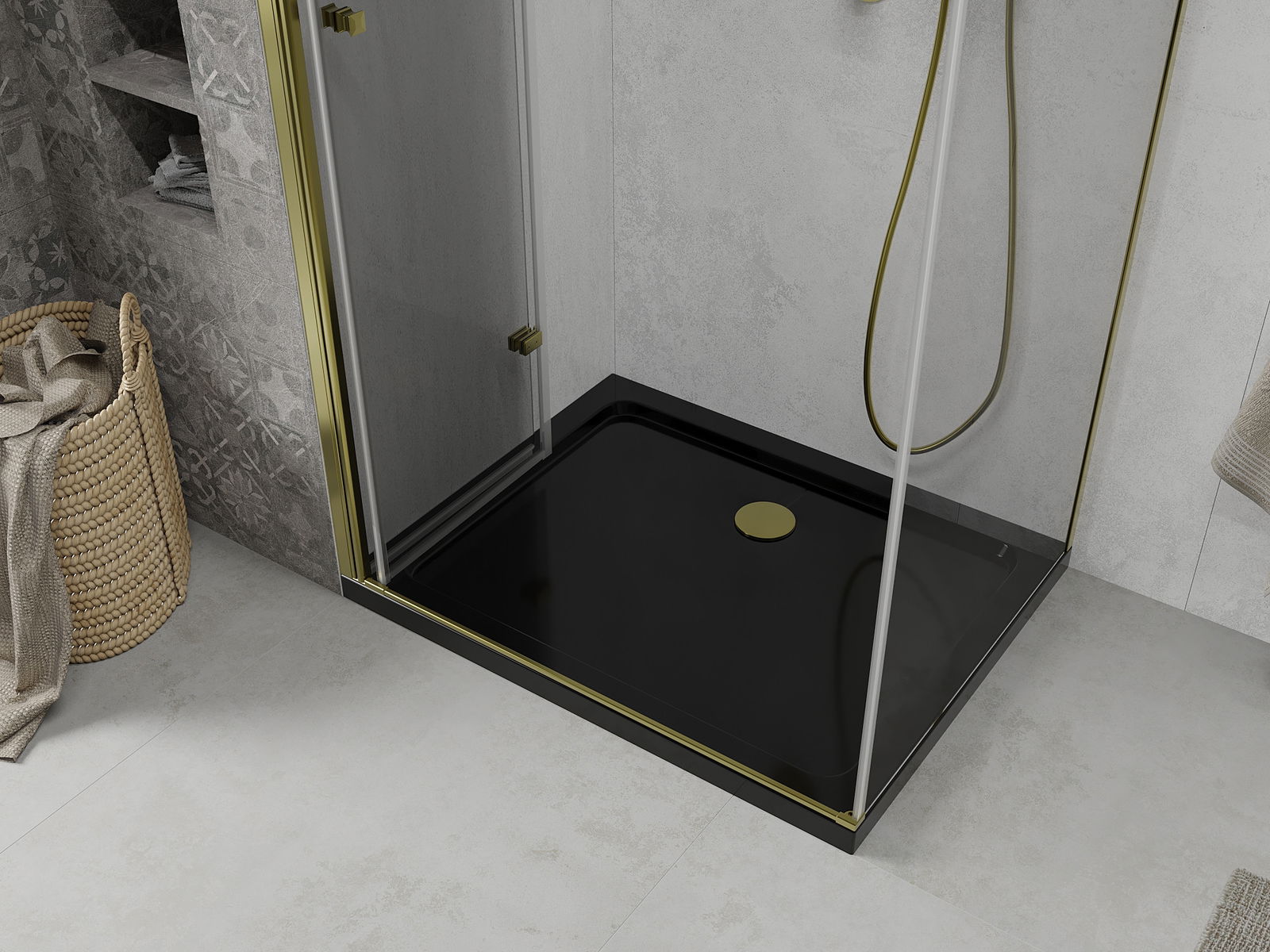 Mexen Lima cabine de douche pliable 90 x 100 cm, transparent, or + receveur de douche Flat, noir - 856-090-100-50-00-4070G