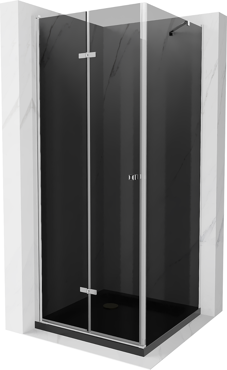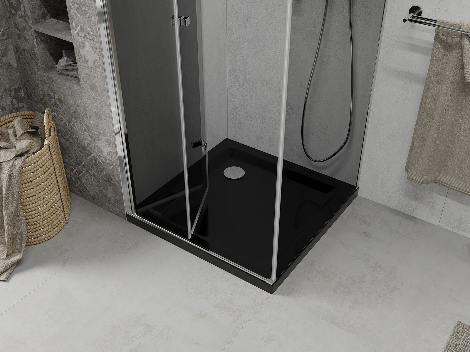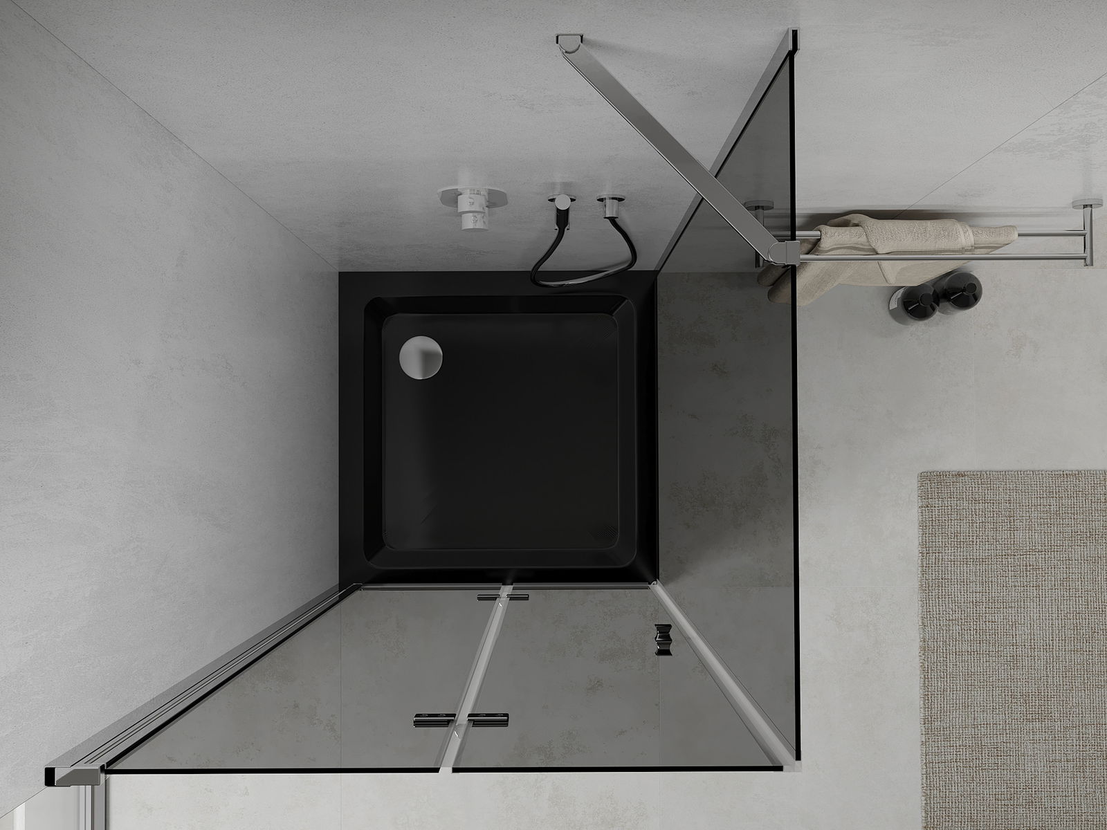 Mexen Lima cabine de douche pliante 90 x 90 cm, graphite, chrome + receveur Flat, noir - 856-090-090-01-40-4070