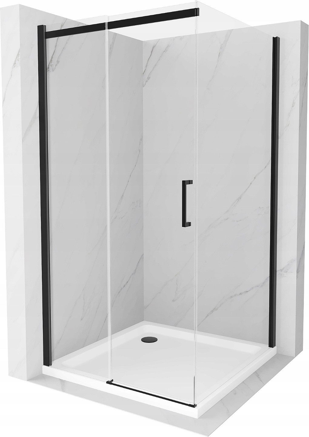 Mexen Omega cabine de douche coulissante 100 x 100 cm, transparente, noire + receveur Flat, blanc - 825-100-100-70-00-4010B