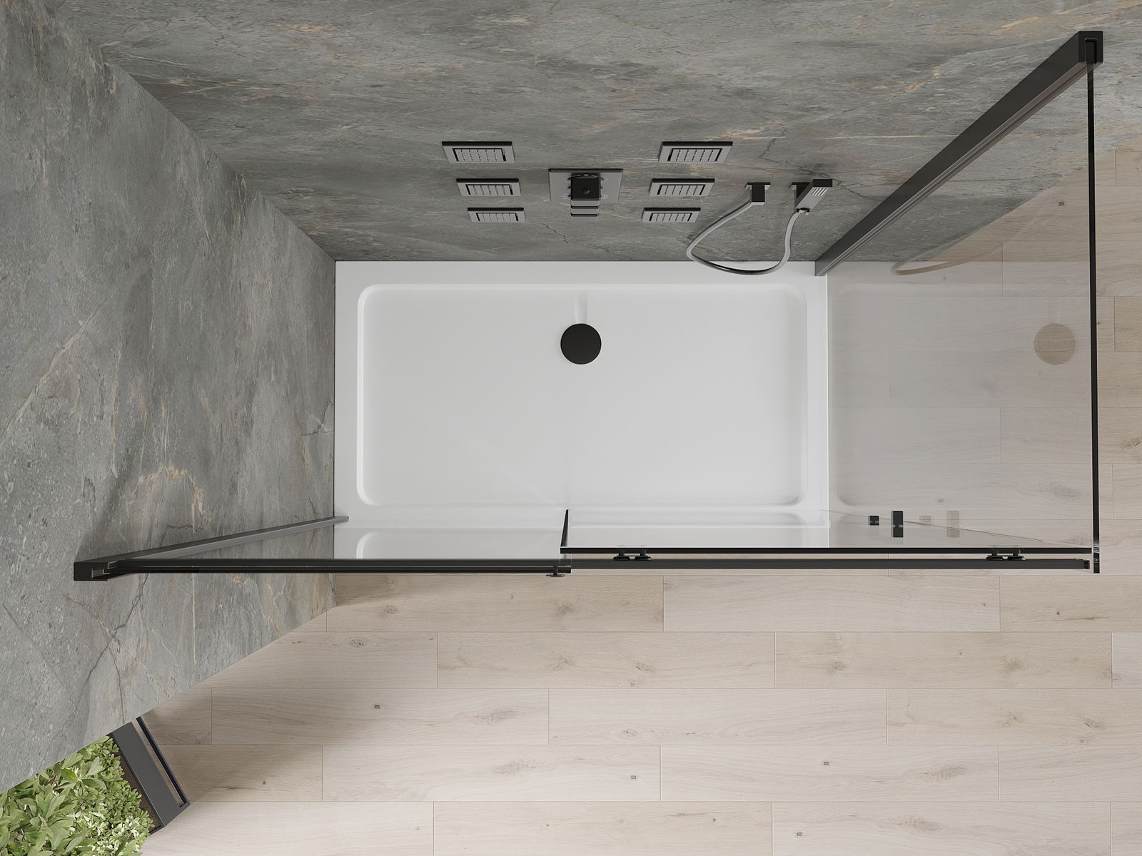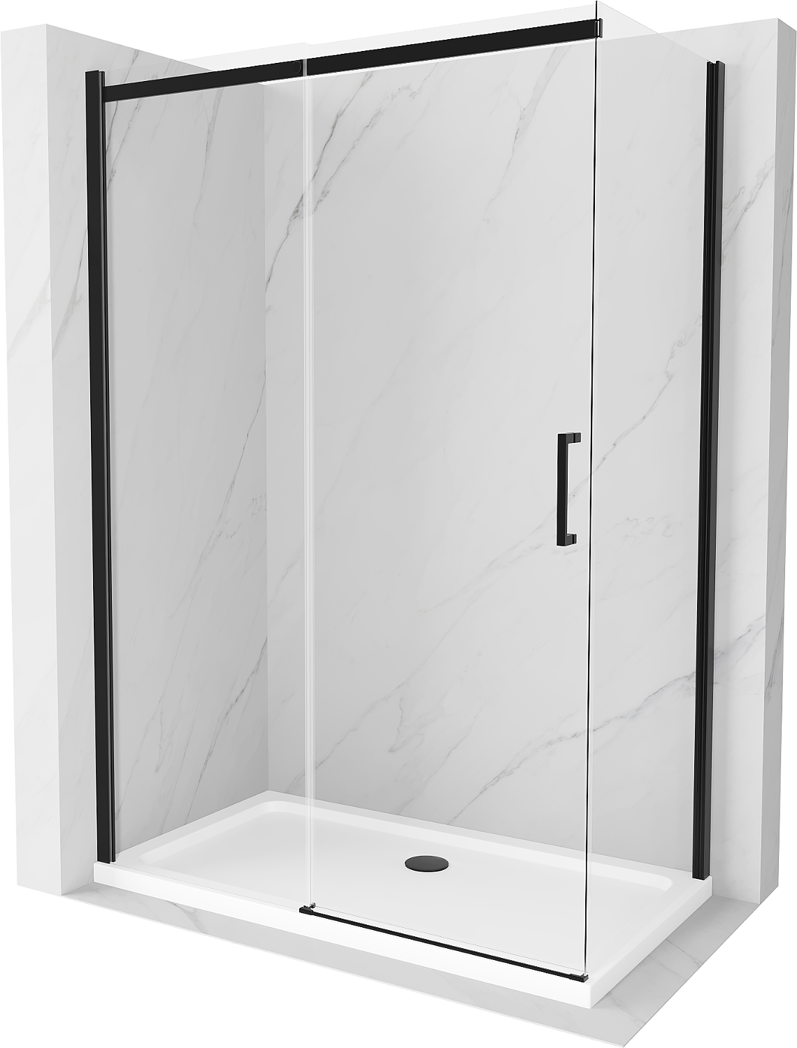 Mexen Omega cabine de douche coulissante 140 x 80 cm, transparent, noire + receveur Flat, blanc - 825-140-080-70-00-4010B