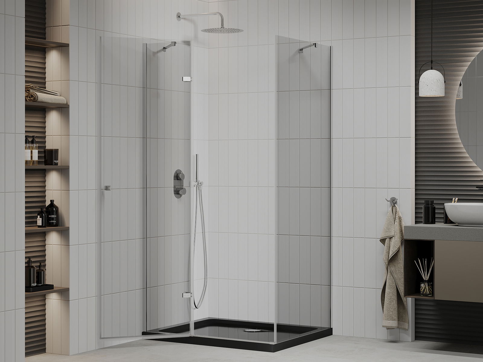 Mexen Roma cabine de douche pivotante 80 x 100 cm, transparent, chromé + receveur Flat, noir - 854-080-100-01-00-4070