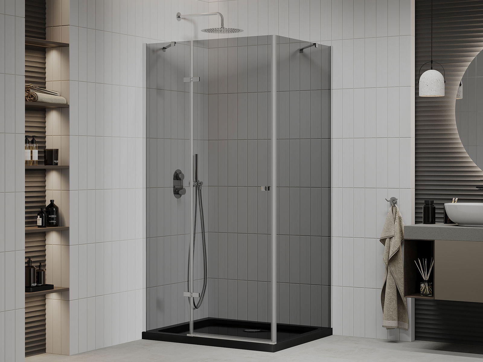 Mexen Roma cabine de douche pivotante 80 x 100 cm, graphite, chrome + receveur Flat, noir - 854-080-100-01-40-4070