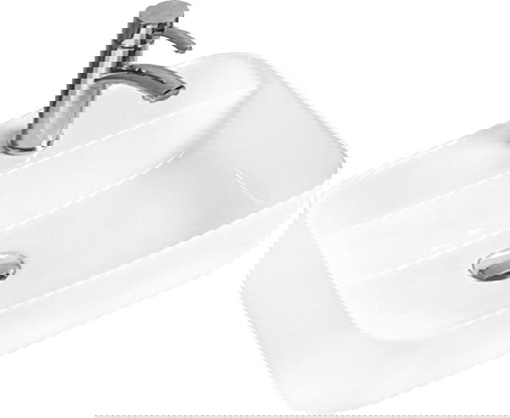 Le lavabo est doté d'un trou pour installer un robinet. Cela permet de gagner de la place dans la salle de bains et de mettre en valeur son esthétique. Cette solution facilite également la propreté des abords du lavabo.