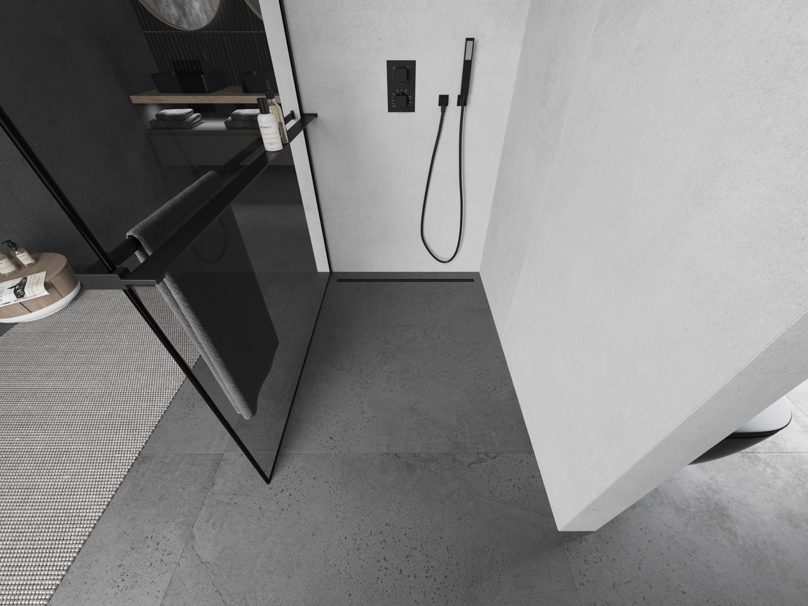 Mexen Kioto+ paroi de douche avec étagère Walk-in 110 x 200 cm, cadre noir, noire - 800-110-121-70-70