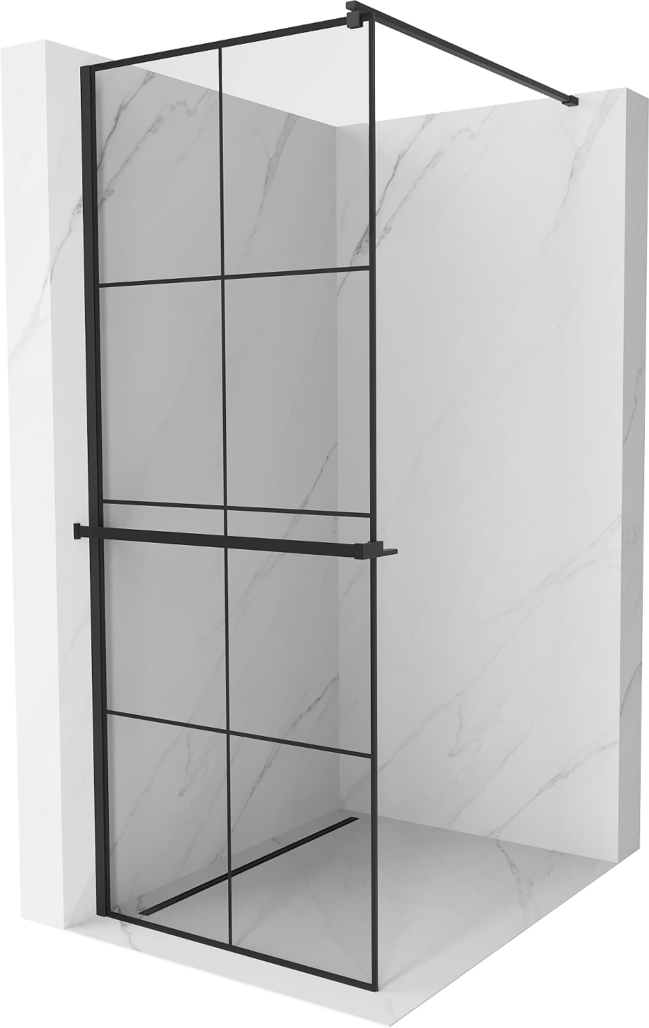 Mexen Kioto+ paroi de douche avec étagère Walk-in 90 x 200 cm, motif grille noire, noir - 800-090-121-70-77