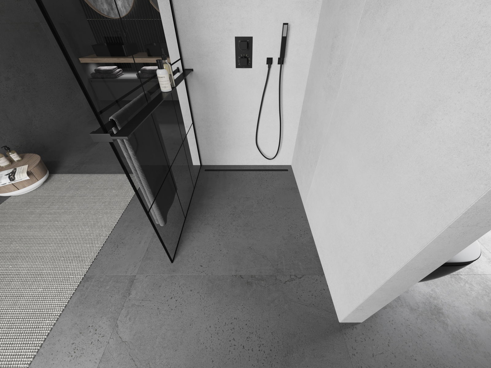 Mexen Kioto+ paroi de douche avec étagère Walk-in 120 x 200 cm, grille noire, noir - 800-120-121-70-77