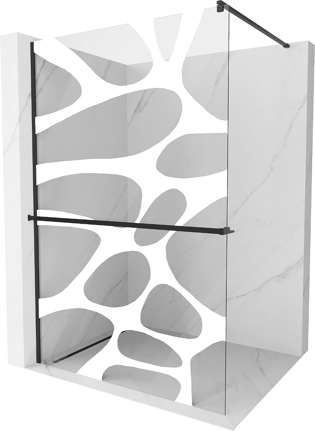 Mexen Kioto+ paroi de douche avec étagère Walk-in 100 x 200 cm, onde blanche, noire - 800-100-121-70-97
