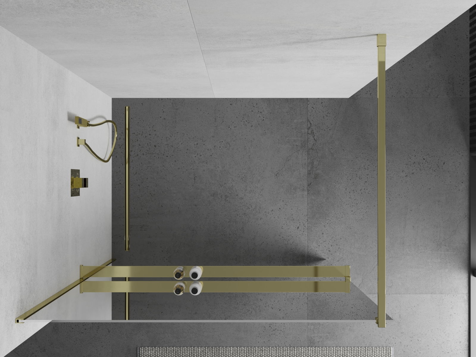 Mexen Kioto+ paroi de douche avec étagère Walk-in 120 x 200 cm, miroir, doré - 800-120-121-50-50