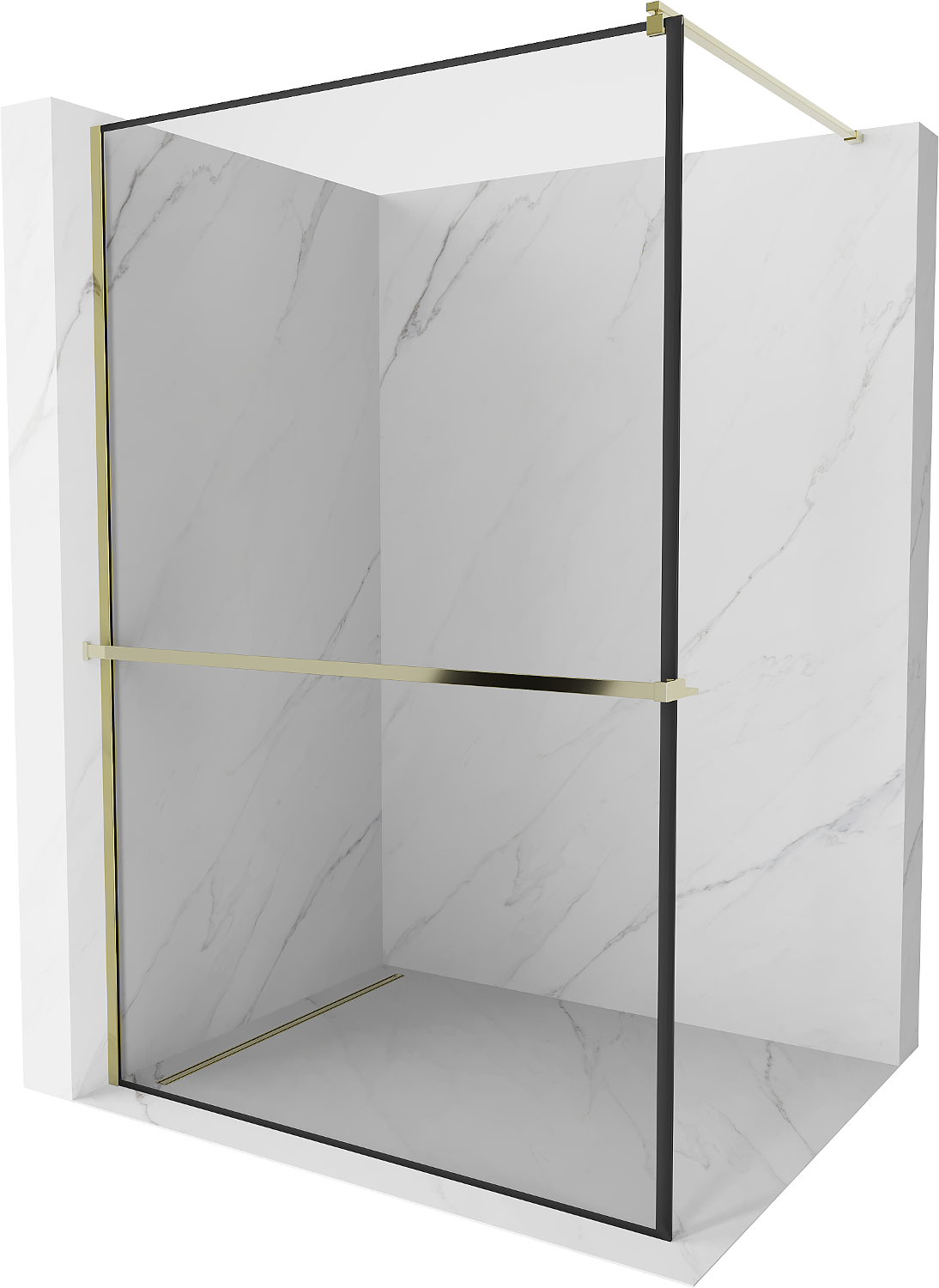 Mexen Kioto+ paroi de douche avec étagère Walk-in 110 x 200 cm, cadre noir, dorée - 800-110-121-50-70