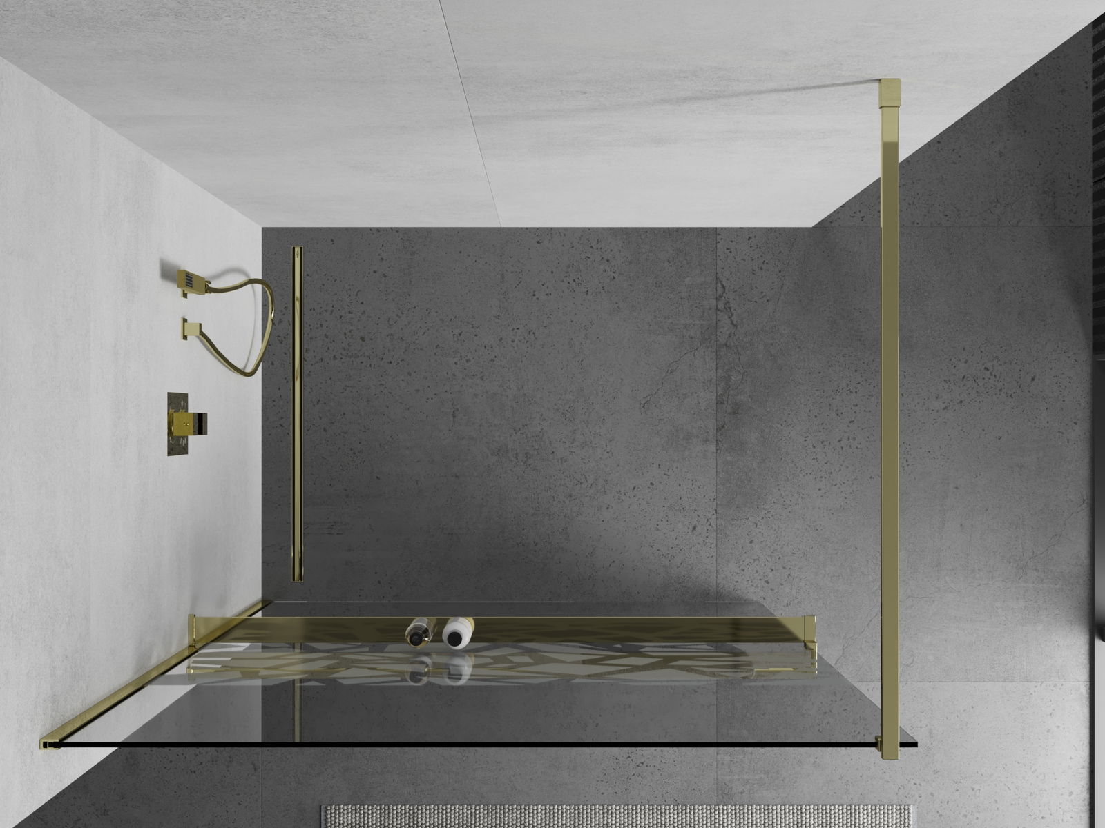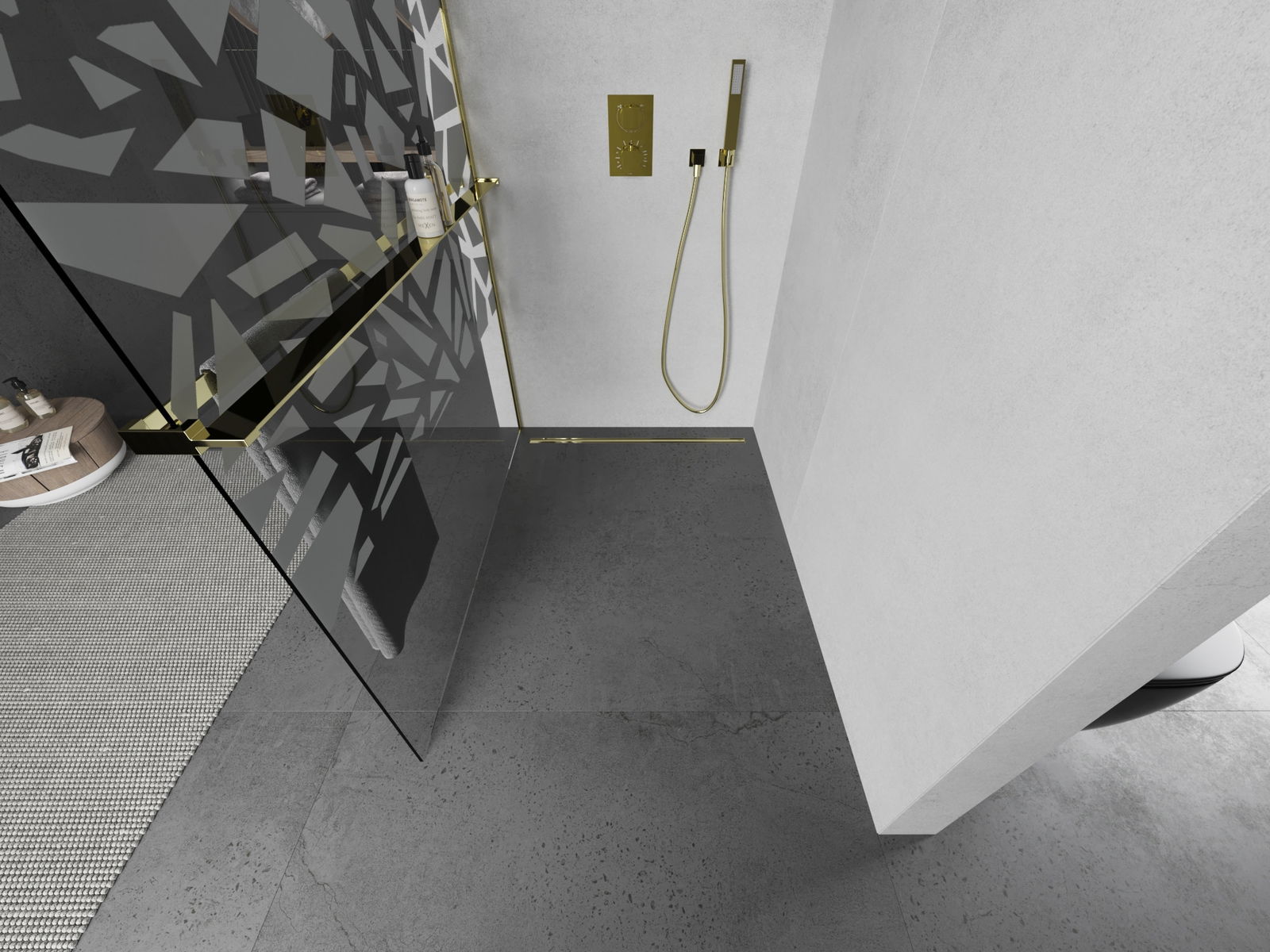 Mexen Kioto+ paroi de douche avec étagère Walk-in 110 x 200 cm, motif blanc, doré - 800-110-121-50-85